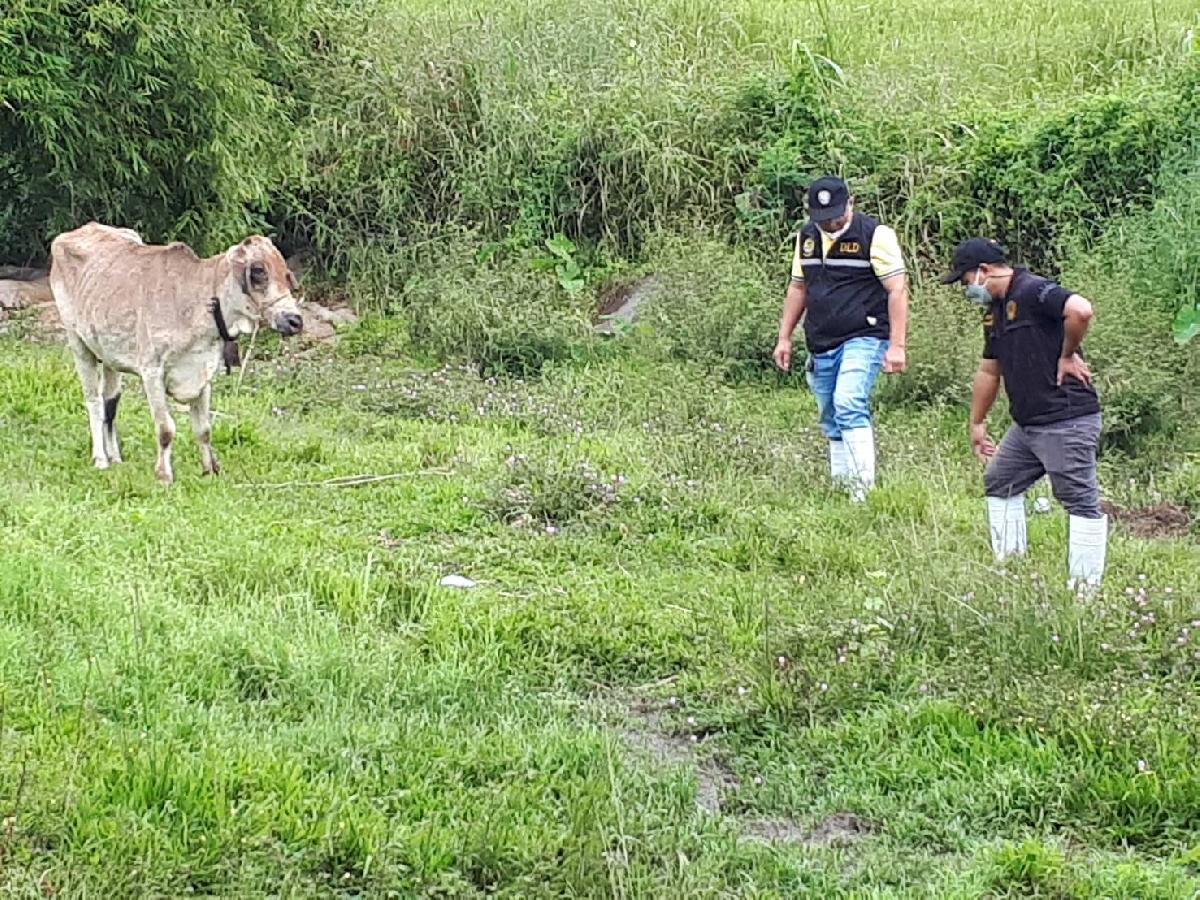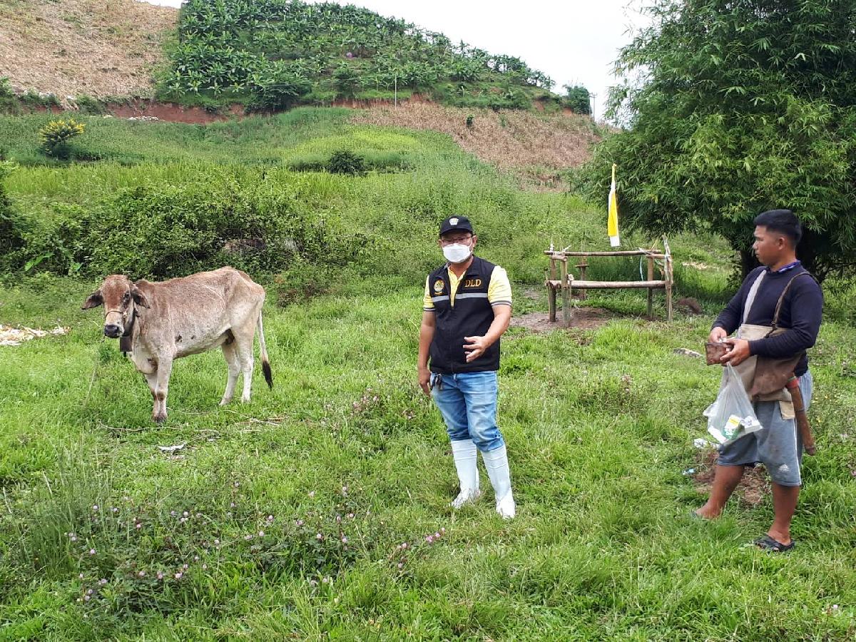 งานส่งเสริมการเกษตรลงพื้นที่ตรวจสอบโรคระบาดในวัวที่บ้านลอบือ (บ้านบริวาร) หมู่ 13