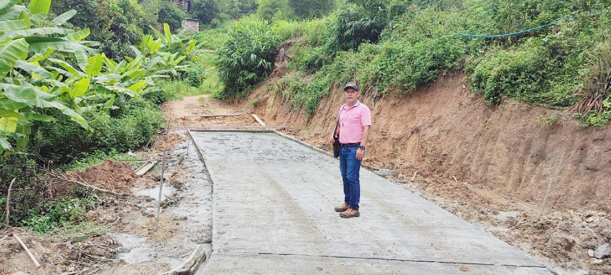 ตรวจโครงการก่อสร้างถนนคอนกรีตเสริมเหล็กบ้านจะต๋อเบอ หมู่ที่ 18
