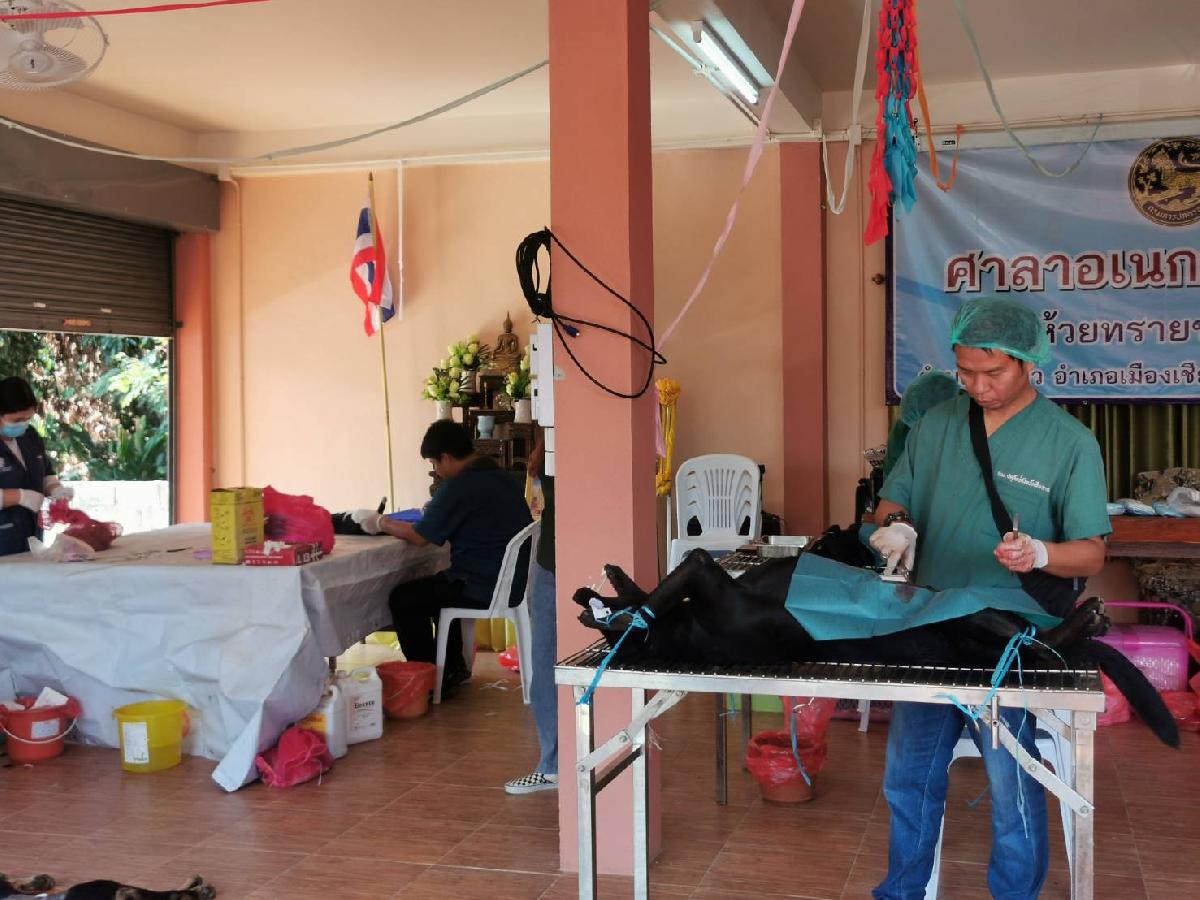 เทศบาลตำบลแม่ยาว ร่วมกับสำนักงานปศุสัตว์อำเภอเมืองเชียงราย ทำหมันสุนัขและแมว พื้นที่ ม.3 บ้านห้วยทรายขาว เมื่อวันที่ 27 ธ.ค. 65