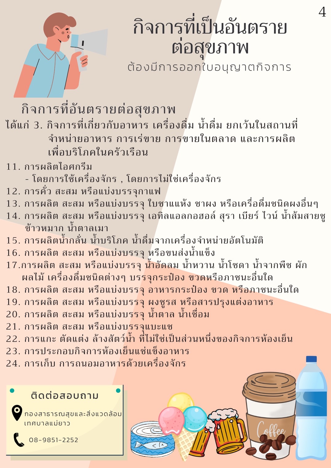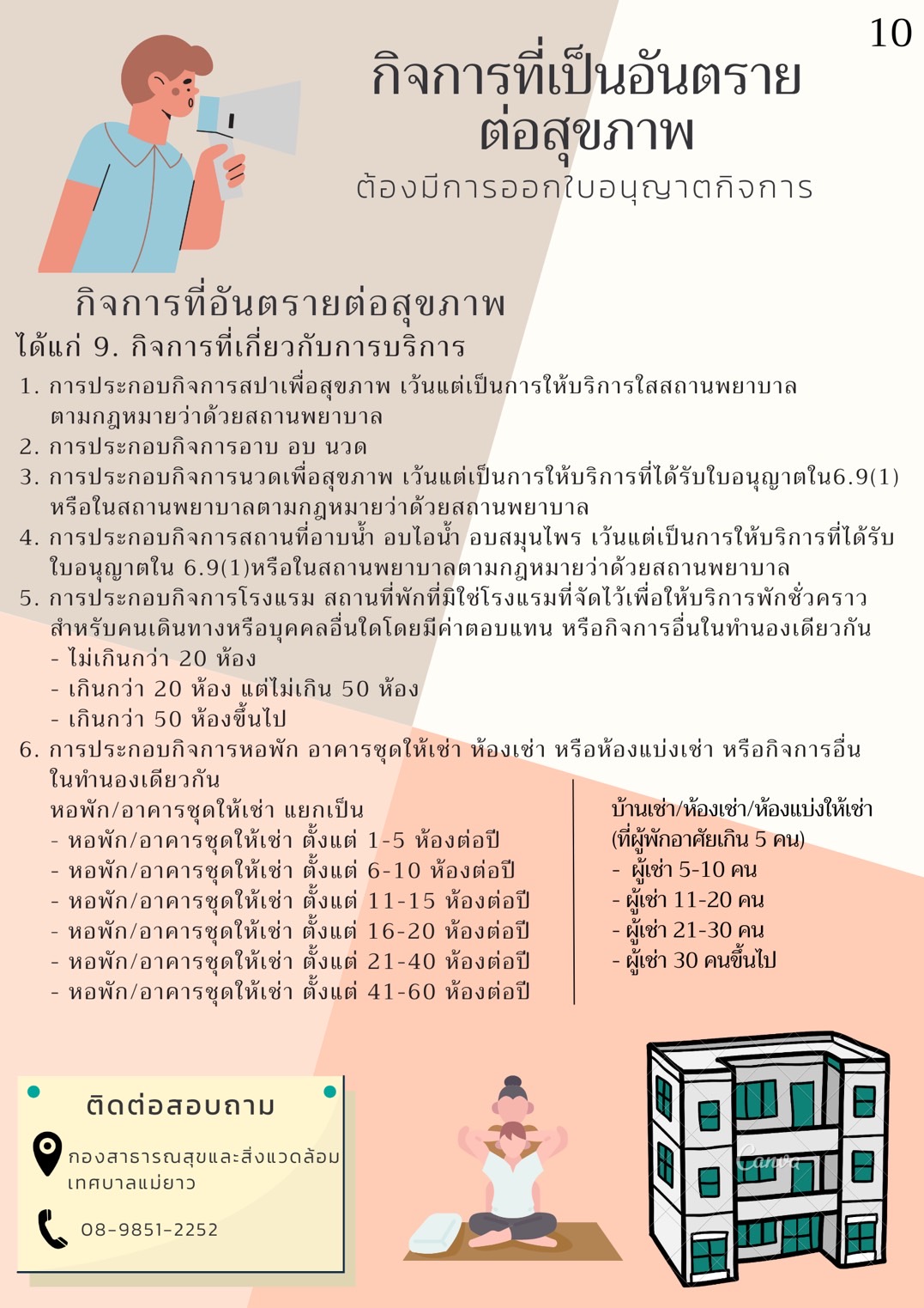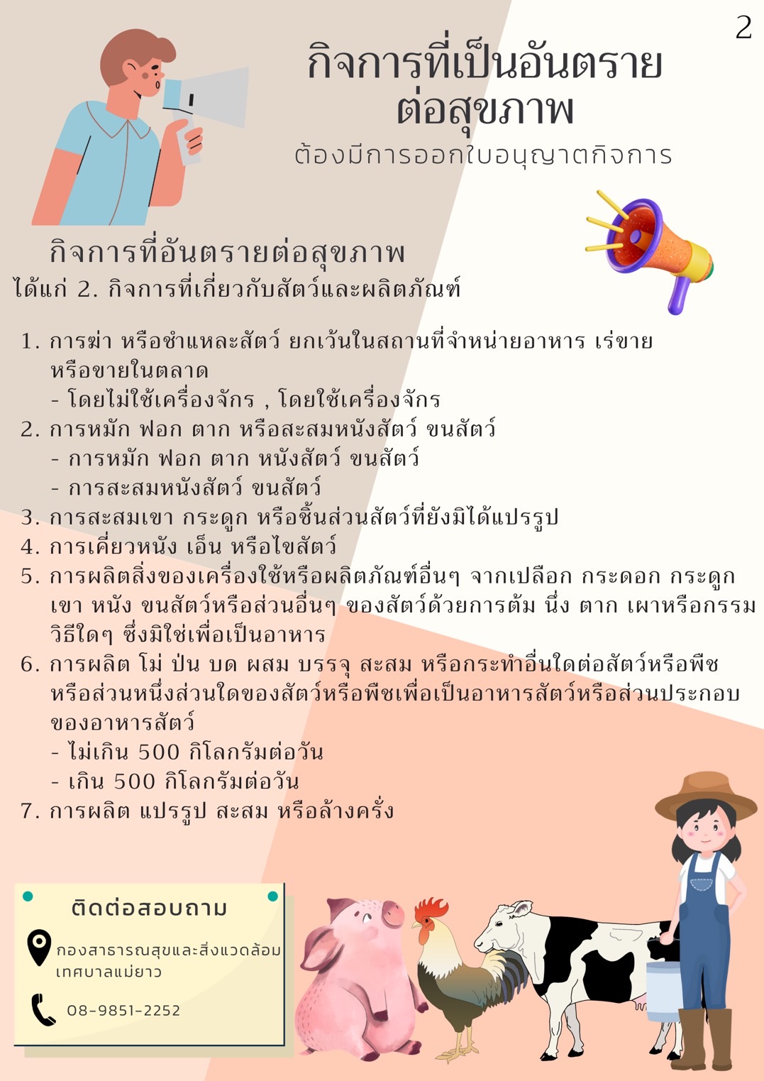- หากท่านประกอบกิจการที่เป็นอันตรายต่อสุขภาพ ต้องยื่นขอรับใบอนุญาตจากเทศบาลตำบลแม่ยาว นะ