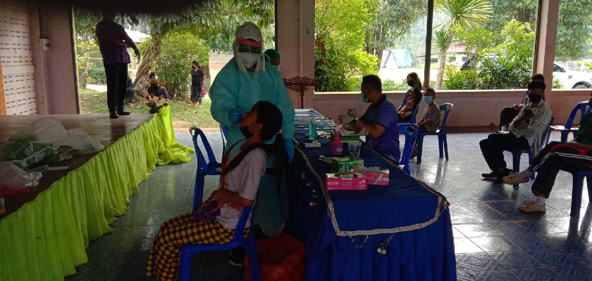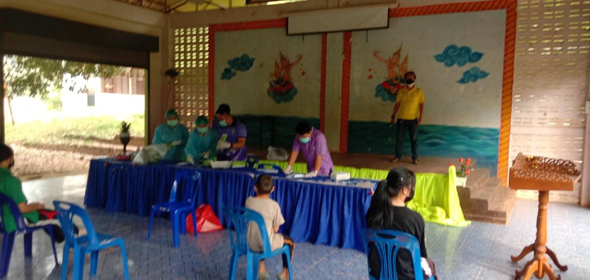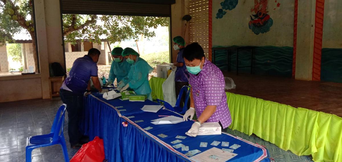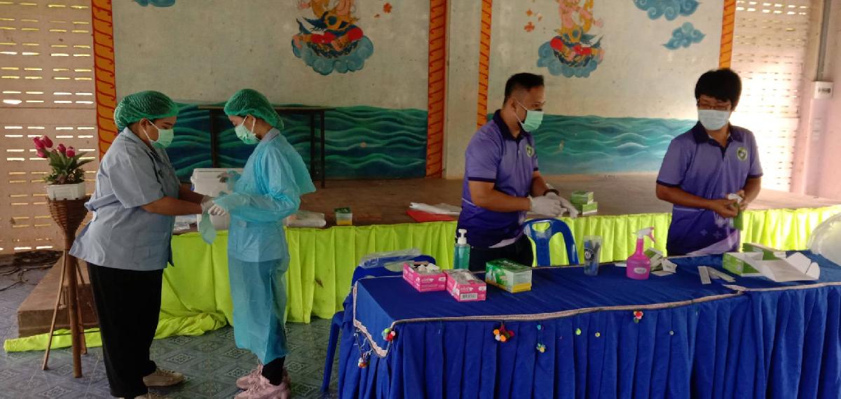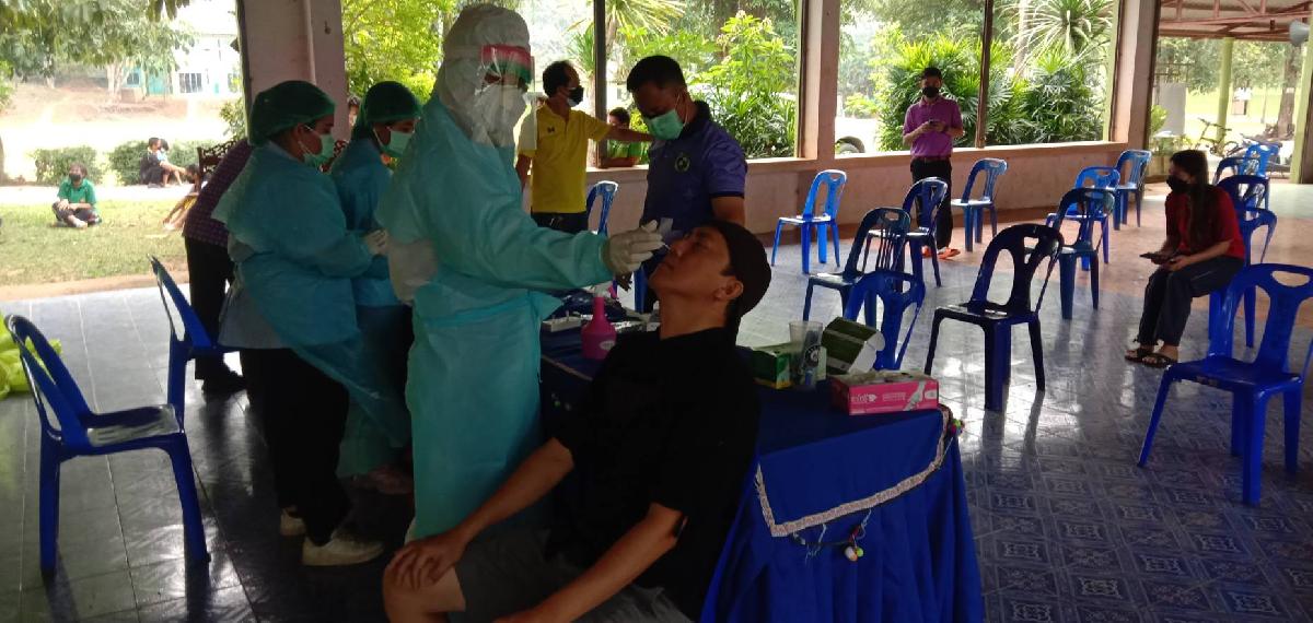 กองสาธารณสุขฯ ลงพื้นที่ตรวจ ATK เบื้องต้น ให่แก่คณะครูและนักเรียน ร.ร. ผาขวางวิทยา