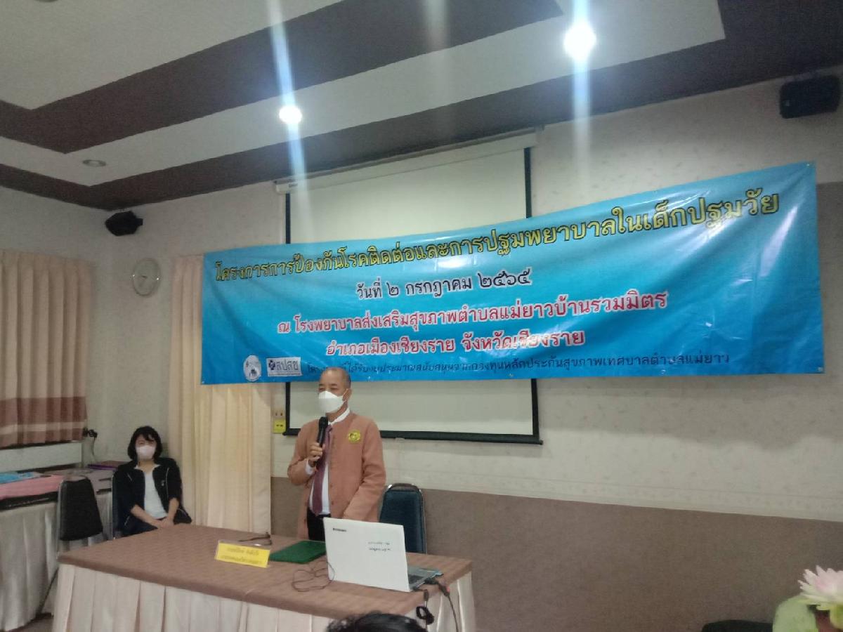 วัน เสาร์ ที่ 2 กรกฎาคม2565 นายอภิรักษ์ อินต๊ะวัง นายกเทศมนตรีตำบลแม่ยาวและ ประธานสภา เทศบาลตำบลแม่ยาว เจ้าหน้าที่ รพสต บ้านรวมมิตร ม.2 และเจ้าหน้าที่กองสาธารณสุขและสิ่งแวดล้อม ร่วมเปิดและติดตามโครงการการป้องกันโรคติดต่อและการปฐมพยาบาลในเด็กปฐมวัย ณ ห้องประชุมรพ.สต. บ้านรวมมิตร ม.2