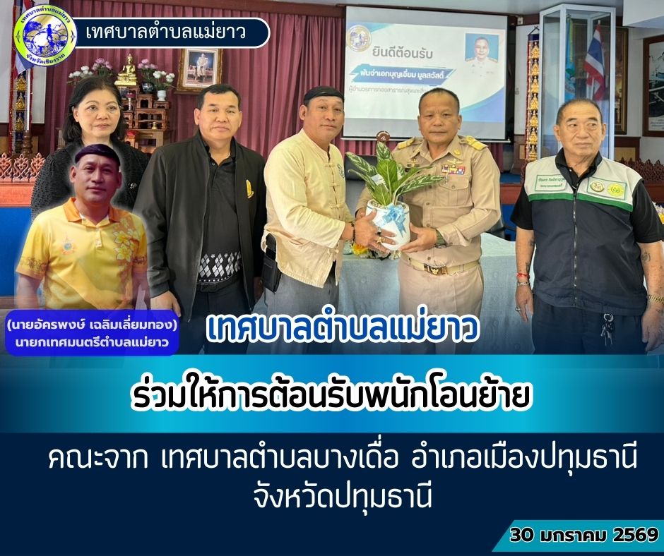 ต้อนรับคณะจากเทศบาลตำบลบางเดื่อ อำเภอเมืองปทุมธานี จังหวัดปทุมธานี โดย เทศบาลตำบลแม่ยาว เมื่อ 30-01-2569 | อ่าน 9 ครั้ง