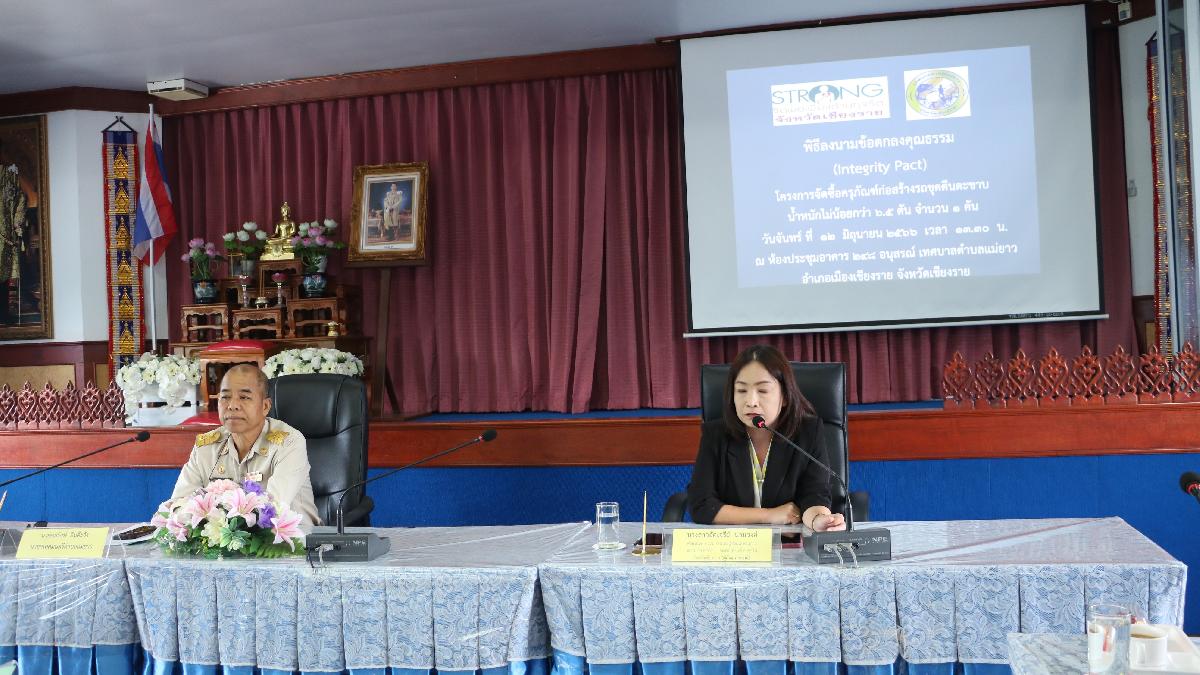 วันที่ 12 มิถุนายน 2566 นายอภิรักษ์ อินต๊ะวัง นายกเทศมนตรีตำบลแม่ยาว พร้อมด้วย รองนายกเทศมนตรีฯ คณะผู้บริหาร ปลัดเทศบาลฯ รองปลัดเทศบาลฯ ประธานสภาเทศบาลฯ สมาชิกสภาเทศบาลฯ กำนันตำบลแม่ยาว คณะกรรมการพิจารณาผลการประกวดราคาอิเล็กทรอนิกส์ คณะกรรมการกำหนดราคากลาง และ คณะกรรมการตรวจรับพัสดุ เข้าร่วมกิจกรรมลงนามข้อตกลงคุณธรรมโครงการจัดซื้อครุภัณฑ์ก่อสร้างรถขุดตีนตะขาบ โดยวิธีอิเล็กทรอนิกส์ (e - bidding) ณ ห้องประชุมอาคาร 248 อนุสรณ์ เทศบาลตำบลแม่ยาว