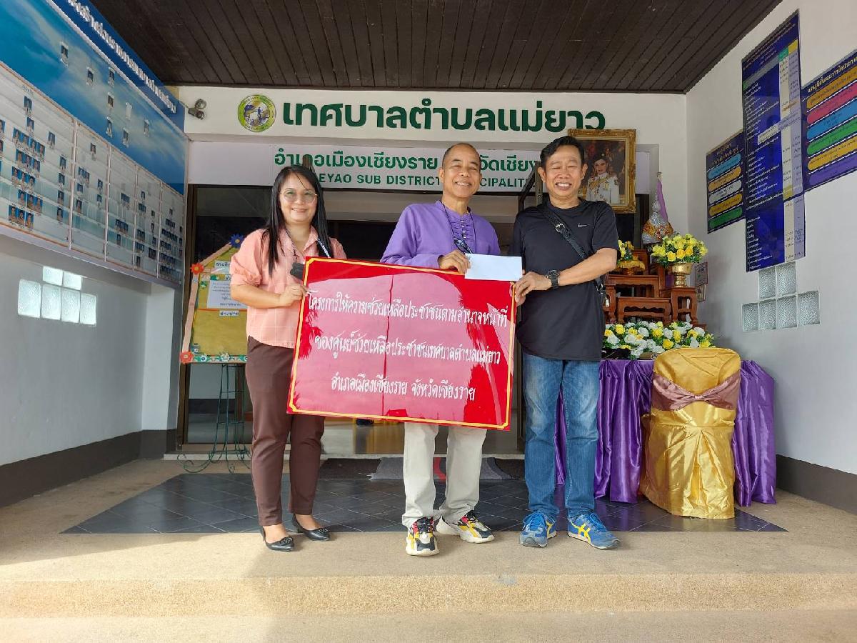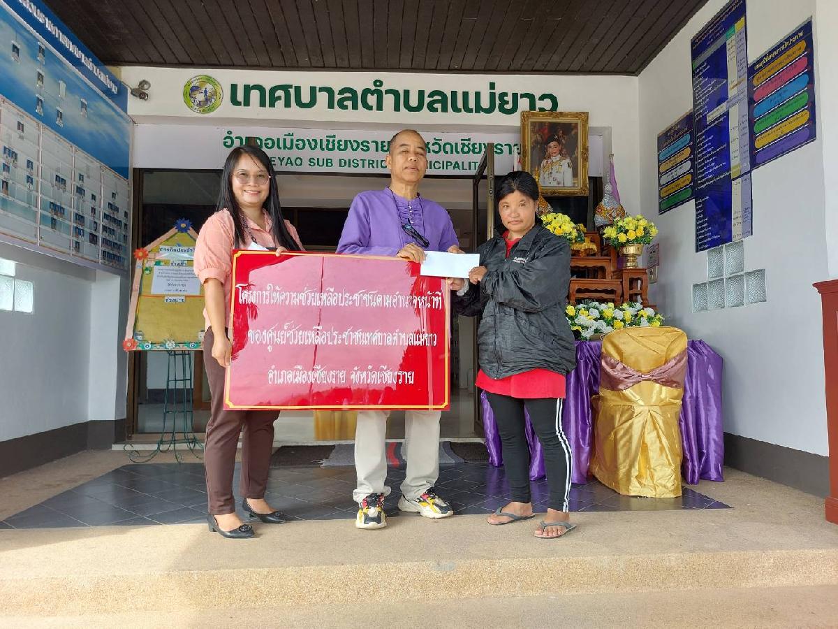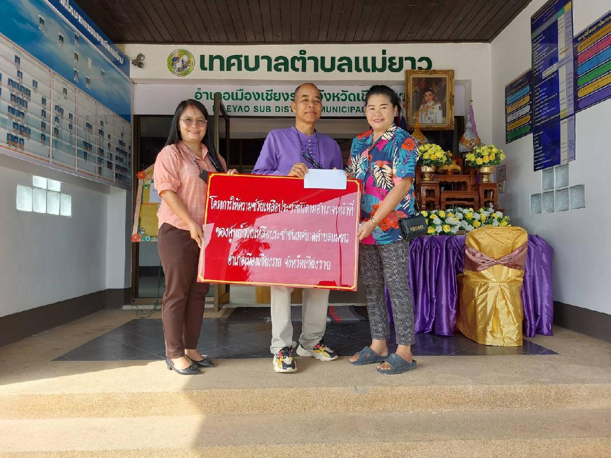 วันพฤหัสบดี ที่ 15 มิถุนายน 2566 เวลา 09.00 น. นายอภิรักษ์ อินต๊ะวัง นายกเทศมนตรีตำบลแม่ยาว มอบเงินช่วยเหลือผู้ประสบภัยจากเหตุวาตภัยตามโครงการให้ความช่วยเหลือประชาชนตามอำนาจหน้าที่ของศูนย์ช่วยเหลือประชาชน ทต.แม่ยาว บริเวณด้านหน้าอาคาร 248 อนุสรณ์ เทศบาลตำบลแม่ยาว