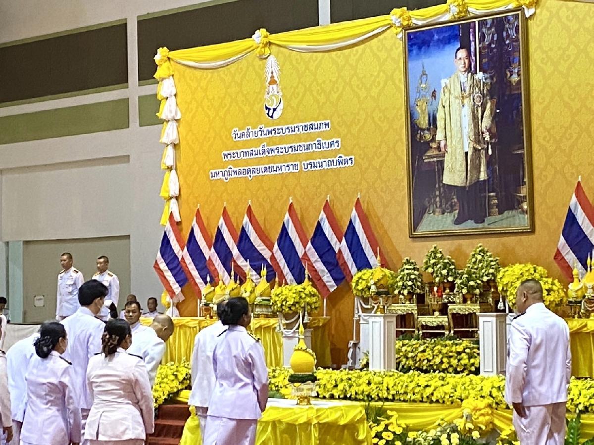 พิธีวางพานพุ่มดอกไม้และพิธีถวายบังคม เนื่องในวันคล้ายวันพระบรมราชสมภพ พระบาทสมเด็จพระบรมชนกาธิเบศรฯ วันชาติ และวันพ่อแห่งชาติ