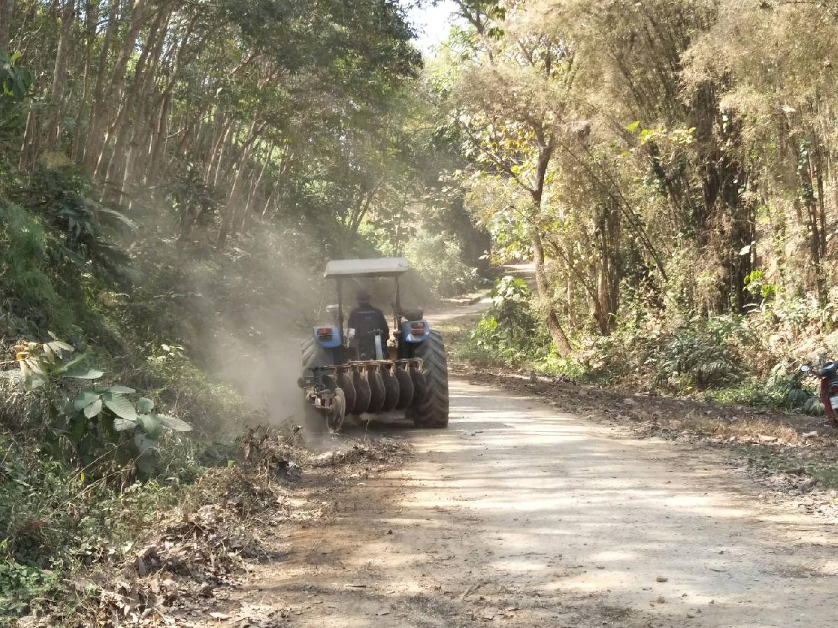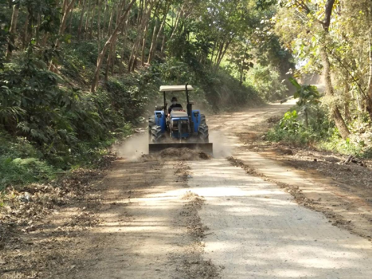 และเจ้าหน้าที่กองช่าง ปรับเกรดถนนทางการเกษตร ณ บ้านกลางทุ่ง ม.7