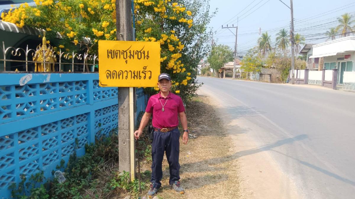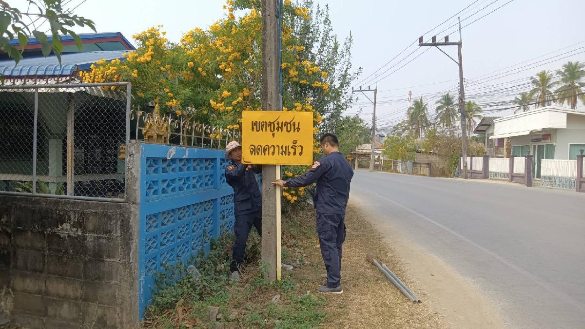 นายอภิรักษ์ อินต๊ะวัง นายกเทศมนตรีตำบลแม่ยาว มอบหมายให้งานป้องกันฯ ติดตั้งป้ายลดความเร็ว บริเวณตลาดทรายมูล