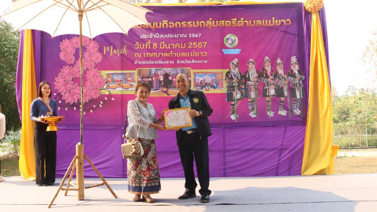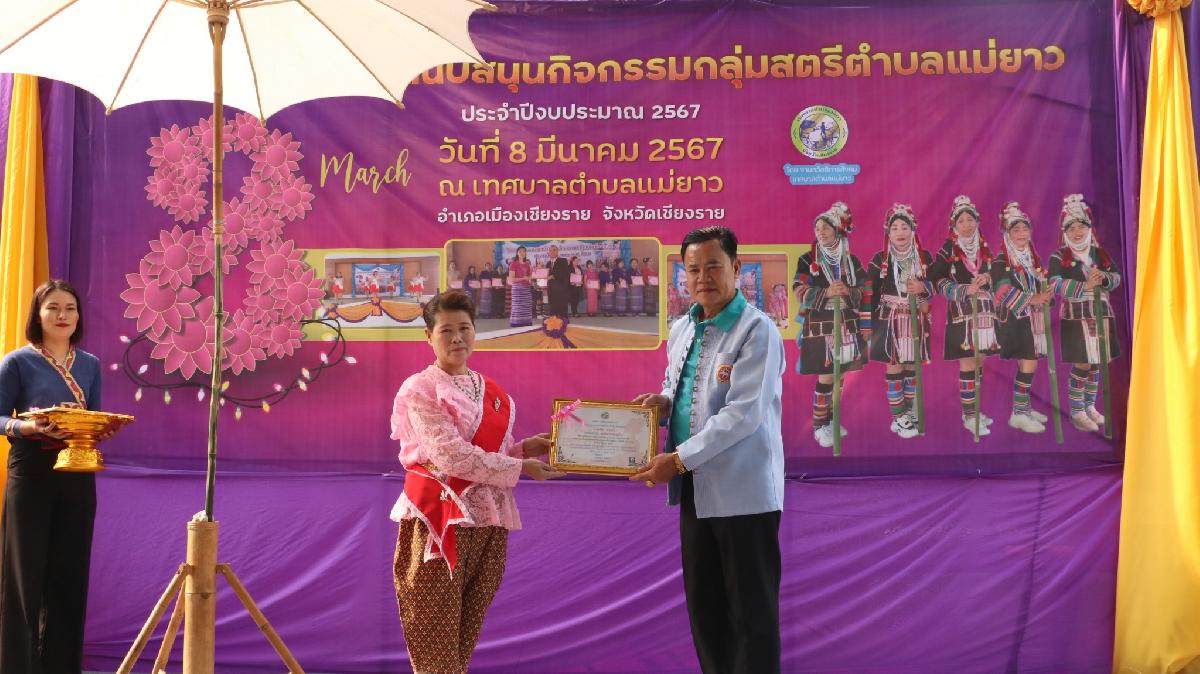 วันศุกร์ ที่ 8 มีนาคม 2567 นายอภิรักษ์ อินต๊ะวัง นายกเทศมนตรีตำบลแม่ยาว มอบหมายให้งานสวัสดิการสังคม สำนักปลัดเทศบาล ดำเนินการจัดทำโครงการส่งเสริมสนับสนุนกิจกรรมกลุ่มสตรีตำบลแม่ยาว ประจำปี 2567 เพื่อเป็นการส่งเสริมกลุ่มพัฒนาสตรีในตำบลแม่ยาว ได้แสดงถึงความสามัคคีและแสดงถึงศักยภาพของกลุ่มพัฒนาสตรีตำบลแม่ยาว โดยมีท่านรัตนา จงสุทธนามณี ให้เกียรติเป็นประธานเปิดงาน