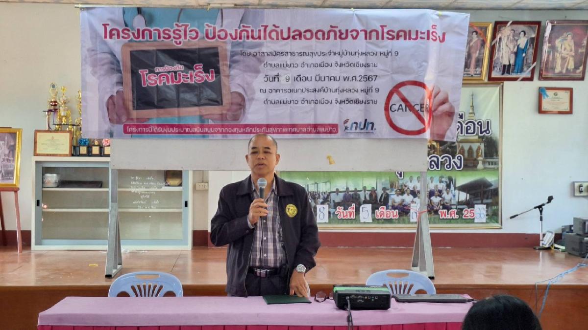 วันเสาร์ ที่ 9 มีนาคม 2567 เวลา 09.00 น. นายอภิรักษ์ อินต๊ะวัง นายกเทศมนตรีตำบลแม่ยาว สมาชิกสภาเทศบาลตำบลแม่ยาว จนท.กองสาธารณสุขและสิ่งแวดล้อม และประธานอสม ม.9 ร่วมพิธีเปิดโครงการและติดตามโครงการรู้ไว ป้องกันได้ปลอดภัยจากโรคมะเร็ง