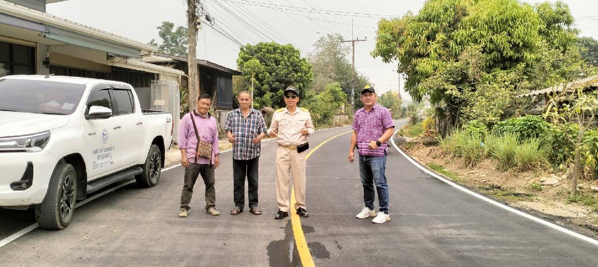 นายอภิรักษ์ อินต๊ะวัง นายกเทศมนตรีตำบลแม่ยาว พร้อมนายอัครพงษ์ เฉลิมเลี่ยมทอง รองนายกเทศมนตรีตำบลแม่ยาว ลงพื้นที่ดูโครงการทำถนนแอสฟัลท์ติกบ้านป่าอ้อ