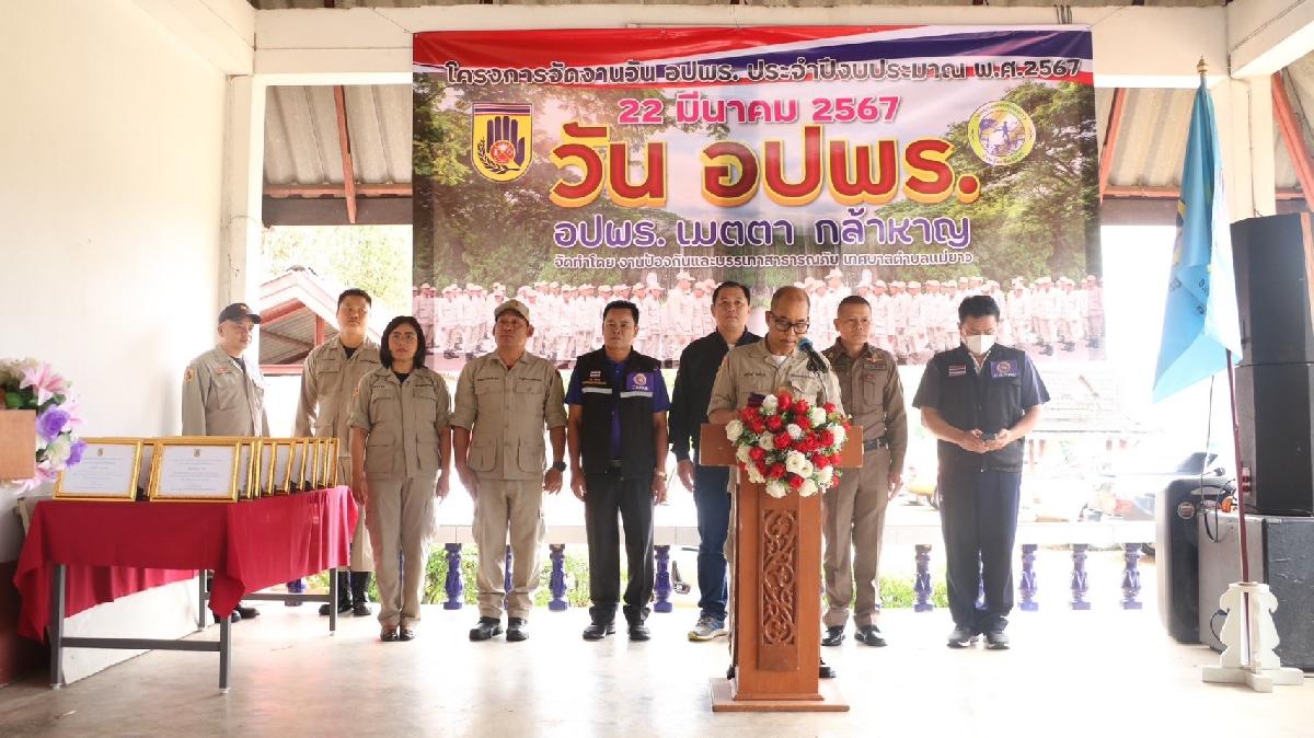นายอภิรักษ์ อินต๊ะวัง นายกเทศมนตรีตำบลแม่ยาว ทีมบริหาร ประธานสภาเทศบาลตำบลแม่ยาว สมาชิกสภาเทศบาล หน.สป. ผอ.กองทุกกอง หน.ฝ่ายทุกฝ่าย งานป้องกันและบรรเทาสาธารณภัย พร้อมด้วย สจ.เดช จิ่งมาดา สว.เกรียงไกร พุทธวงค์ กำนันตำบลแม่ยาว ผู้ใหญ่บ้าน วิทยากร และ อปพร. ร่วมพิธีเปิดโครงการจัดงานวันอาสาสมัครป้องกันภัยฝ่ายพลเรือน (อปพร) ประจำปีงบประมาณ 2567