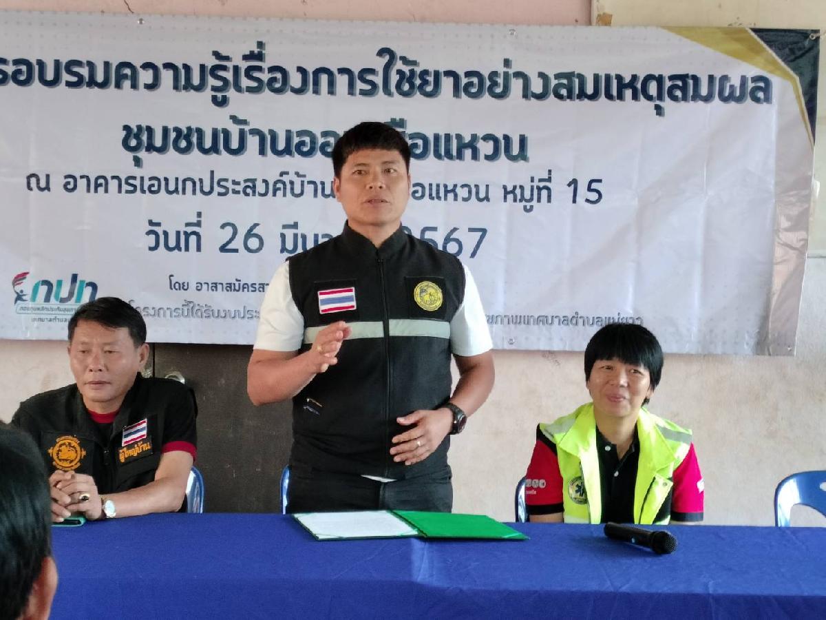 นายอภิรักษ์ อินต๊ะวัง ได้มอบหมายให้ นายศักดิ์นรินทร์ พิทักษ์อดีศร ร่วมด้วยเจ้าหน้าที่กองสาธารณสุขและสิ่งแวดล้อม เป็นประธานพิธีเปิดโครงการอบรมความรู้เรื่องการใช้ยาอย่างสมเหตุสมผล ชุมชนบ้านออบเสือแหวน หมู่ที่ 15 ต.แม่ยาว