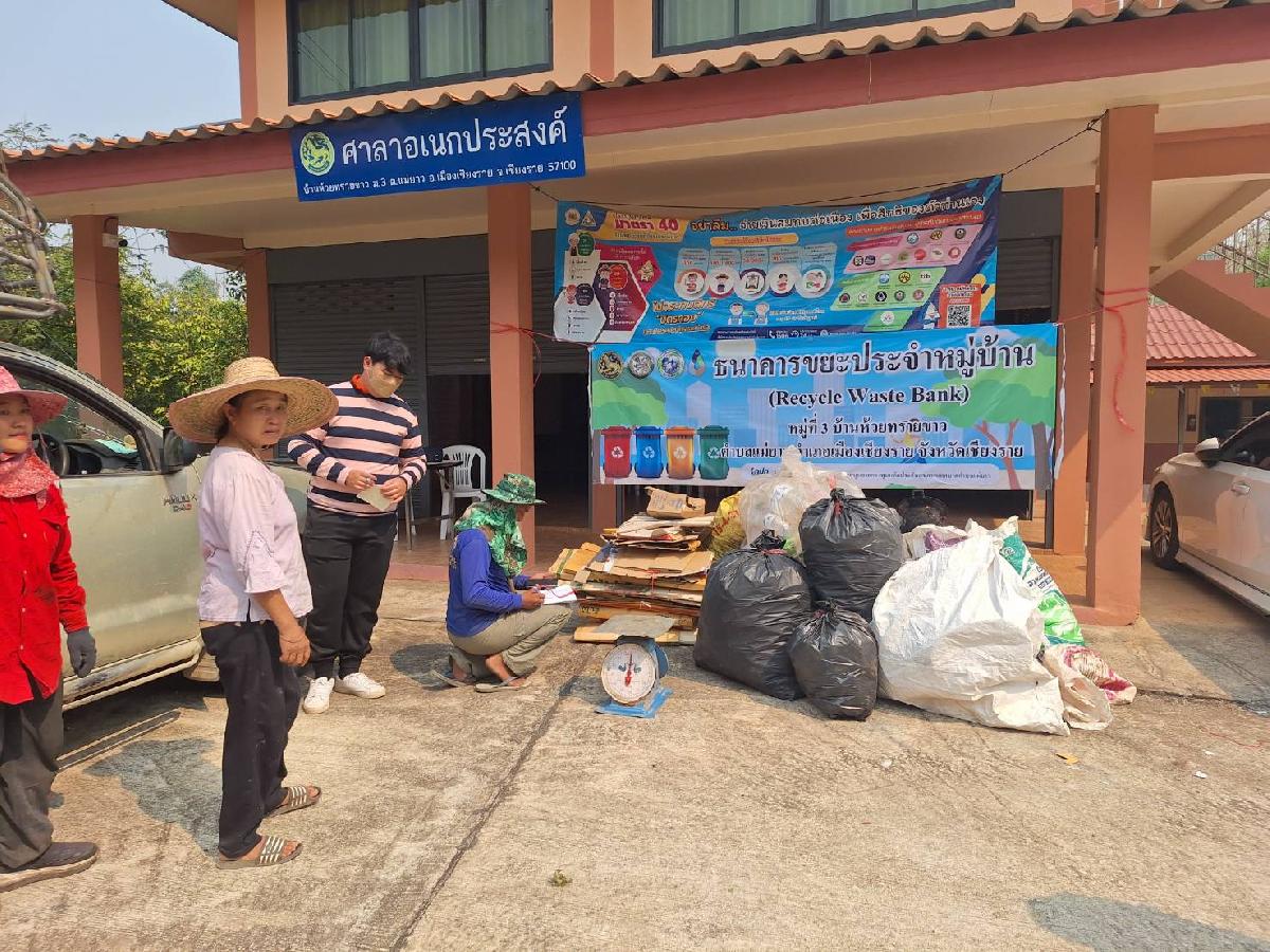 วันที่ 3 เมษายน 2567 นายอภิรักษ์ อินต๊ะวังนายกเทศมนตรีตำบลแม่ยาว ได้มอบหมายให้เจ้าหน้าที่กองสาธารณสุขฯดำเนินงานธนาคารขยะประจำหมู่บ้านร่วมกับ ผญบ ม.3 และผู้ประกอบการ ในการซื้อ - ขาย ขยะรีไซเคิล ประจำหมู่บ้านหมู่ที่ 3 บ้านห้วยทรายขาว