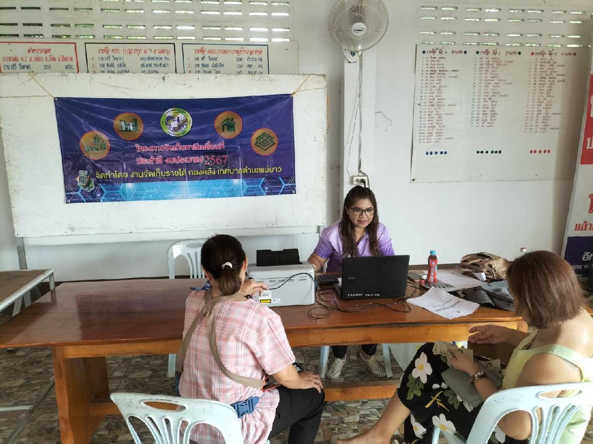 นายอภิรักษ์ อินต๊ะวัง นายกเทศมนตรีตำบลแม่ยาว มอบหมายให้งานพัฒนารายได้ กองคลัง ออกเก็บภาษีสิ่งปลูกสร้าง