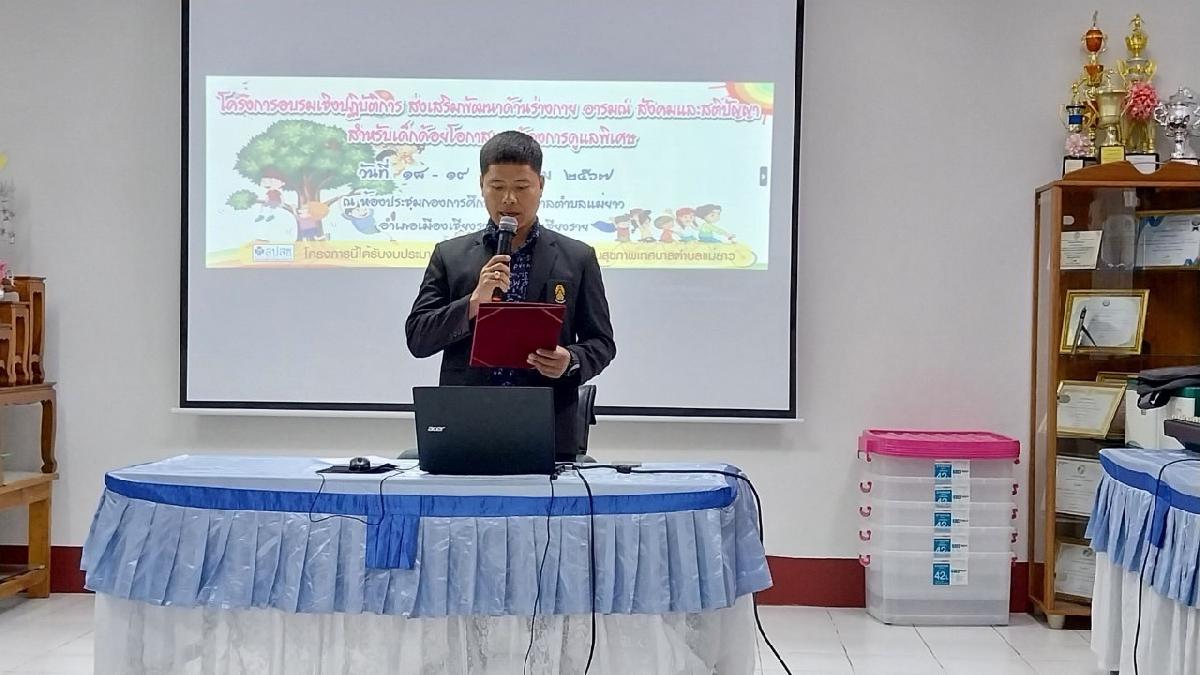 นายอภิรักษ์ อินต๊ะวัง นายกเทศมนตรีตำบลแม่ยาวมอบหมายให้ นายศักดิ์นรินทร์ พิทักษ์อดิศร รองนายกเทศมนตรีตำบลแม่ยาว มาเป็นประธานในพิธีเปิดโครงการอบรมเชิงปฏิบัติการส่งเสริมพัฒนาด้านร่างกายอารมณ์สังคมและสติปัญญาสำหรับเด็กด้อยโอกาสและต้องการดูแลพิเศษ