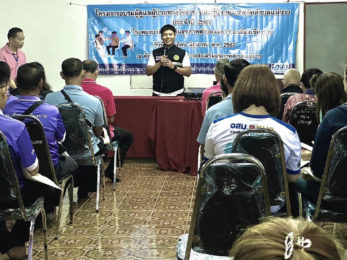 นายอภิรักษ์ อินต๊ะวัง นายกเทศมนตรีตำบลแม่ยาว มอบหมายให้นายศักดิ์นรินทร์ พิทักษ์อดีศร รองนายกเทศมนตรีตำบลแม่ยาว เป็นประธานพิธีเปิดโครงการอบรมผู้ดูแลผู้ป่วยทางจิตเวช และผู้ป่วยยาเสพติดตำบลแม่ยาว