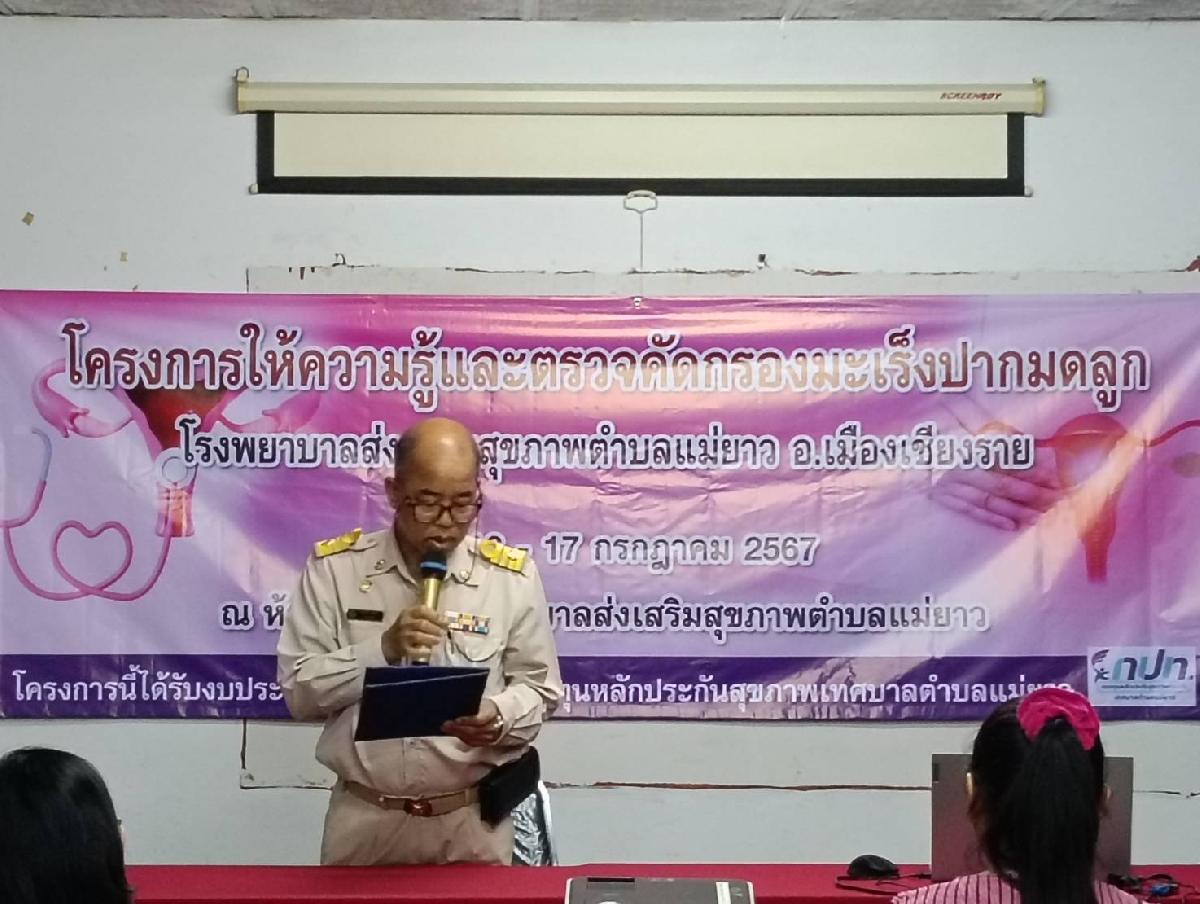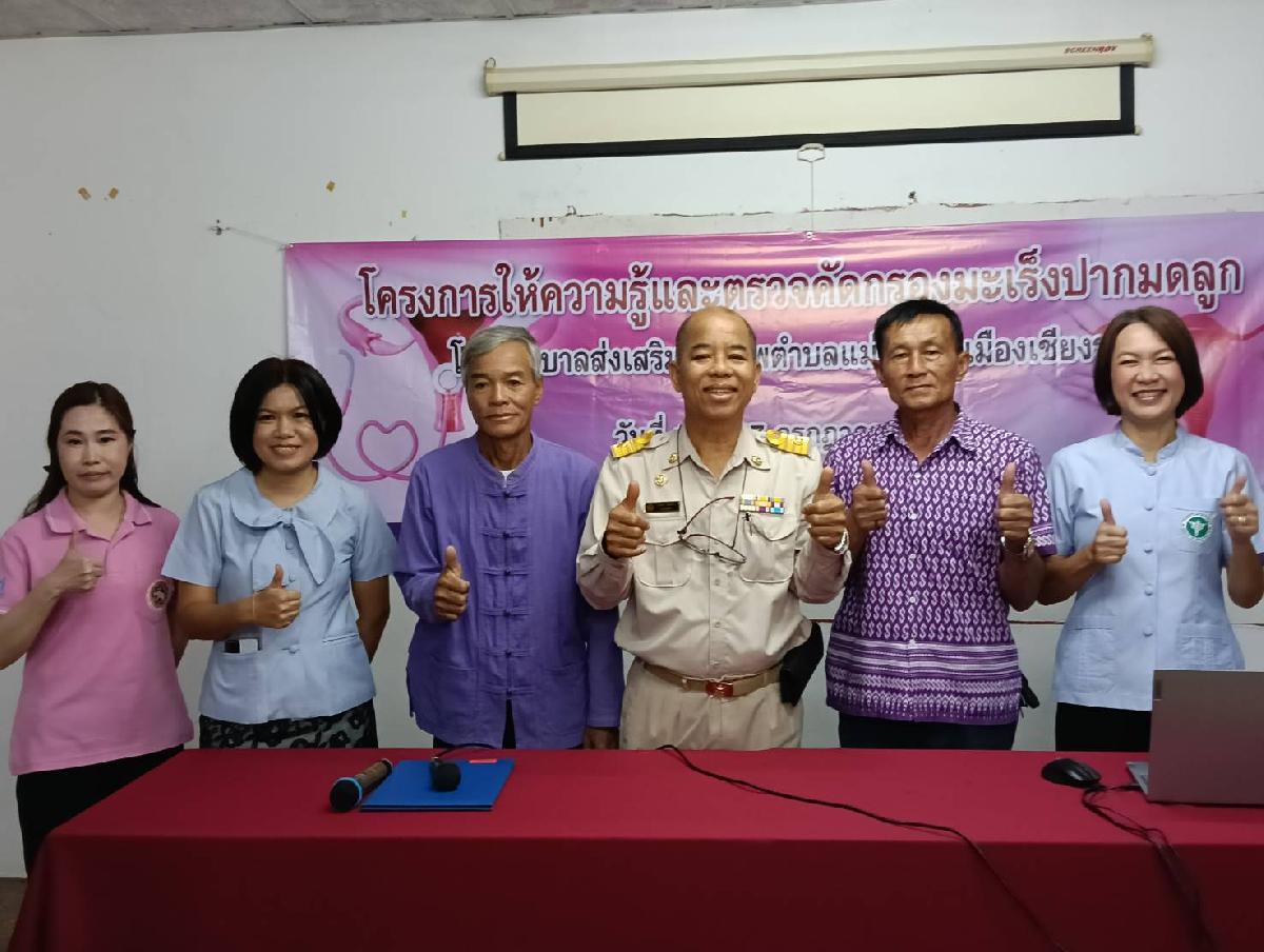 นายอภิรักษ์ อินต๊ะวัง นายกเทศมนตรีตำบลแม่ยาว นายพล ผามั่ง เลขานุการนายกเทศมนตรีฯ นายอาหล่อง อาหยิ ที่ปรึกษานายกเทศมนตรี จนท.กองสาธารณสุขฯ ร่วมเปิดและติดตามโครงการให้ความรู้และคัดกรองมะเร็งปากมดลูก
