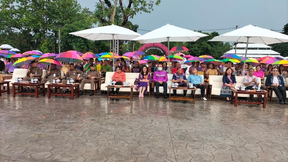 นายอภิรักษ์ อินต๊ะวัง นายกเทศมนตรีตำบลแม่ยาว ทีมบริหาร หัวหน้าสำนักปลัดเทศบาล หัวหน้าฝ่ายปกครอง ร่วมพิธีเปิดงานดอกไม้ในสายฝน