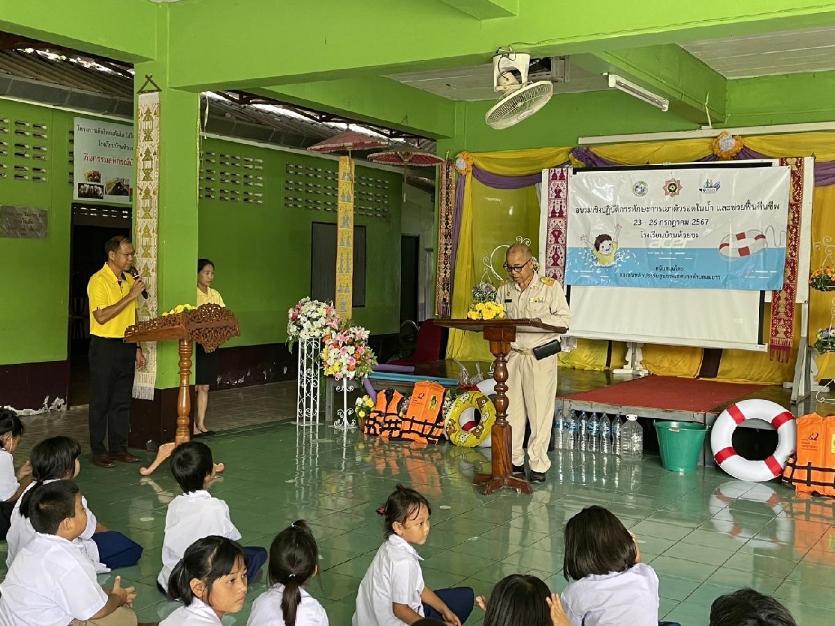 นายอภิรักษ์ อินต๊ะวัง นายกเทศมนตรีตำบลแม่ยาว นายอาหล่อง อาหยิ ที่ปรึกษานายกเทศมนตรีตำบลแม่ยาว จนท.กองสาธารณสุขฯ ร่วมเปิดและติดตามโครงการอบรมเชิงปฏิบัติการทักษะการเอาตัวรอดในน้ำ และการช่วยฟื้นคืนชีพ