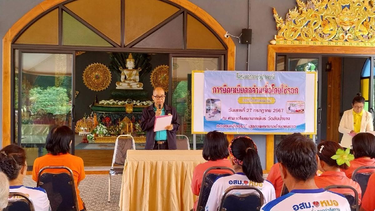 นายอภิรักษ์ อินต๊ะวัง นายกเทศมนตรีตำบลแม่ยาว นายพล ผามั่ง เลขานุการนายกเทศมนตรี หัวหน้าฝ่ายบริหารการศึกษา รักษาราชการแทน ผู้อำนวยการกองการศึกษา นักวิชาการพัฒนาชุมชน เจ้าหน้าที่กองสาธารณสุขฯและเจ้าหน้าที่กองการศึกษา ร่วมเปิดและติดตามโครงการอบรมเชิงปฎิบัติการแกนนำสุขภาพเพื่อฟื้นฟูสมรรถภาพโดยการใช้กายอุปกรณ์