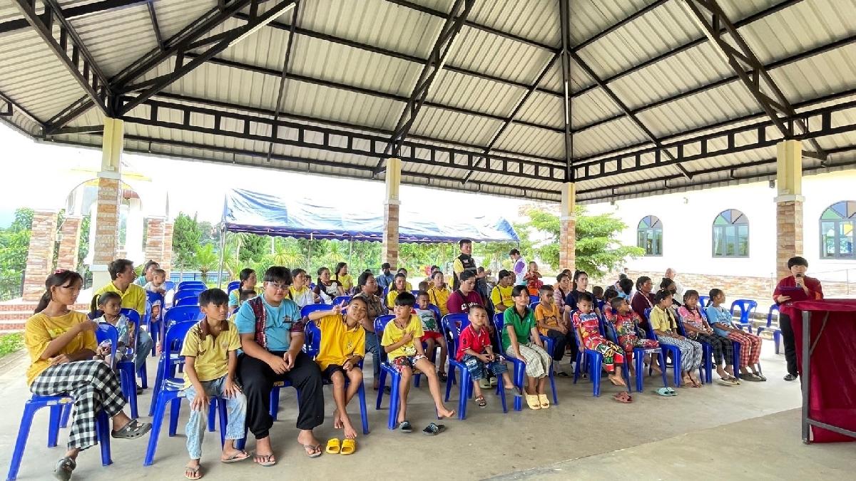 ณ หอประชุมเอนกประสงค์บ้านสันเจริญ หมู่บ้านบริวารของบ้านดงเจริญ หมู่ที่ 17