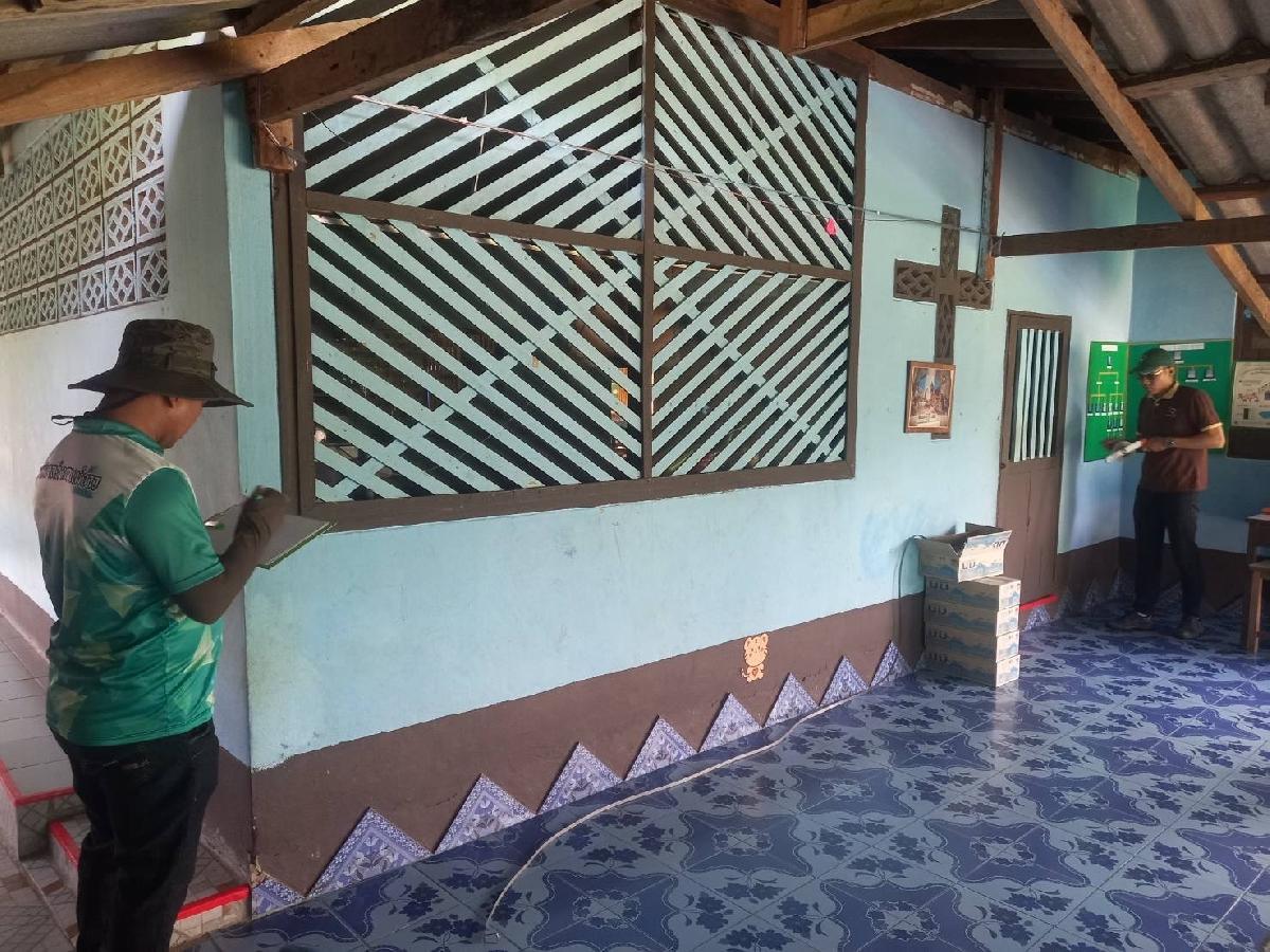 นายอภิรักษ์ อินต๊ะวัง นายกเทศมนตรีตำบลแม่ยาว มอบหมายนายสุทธินันท์ ปัญโญ นักวิชาการศึกษา พร้อมเจ้าหน้าที่กองช่าง สำรวจประมาณราคาเพื่อซ่อมแซมหลังคาและฝ้าเพดานอาคารเรียน