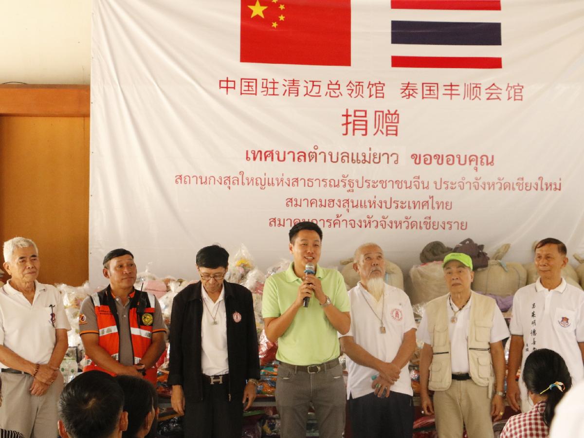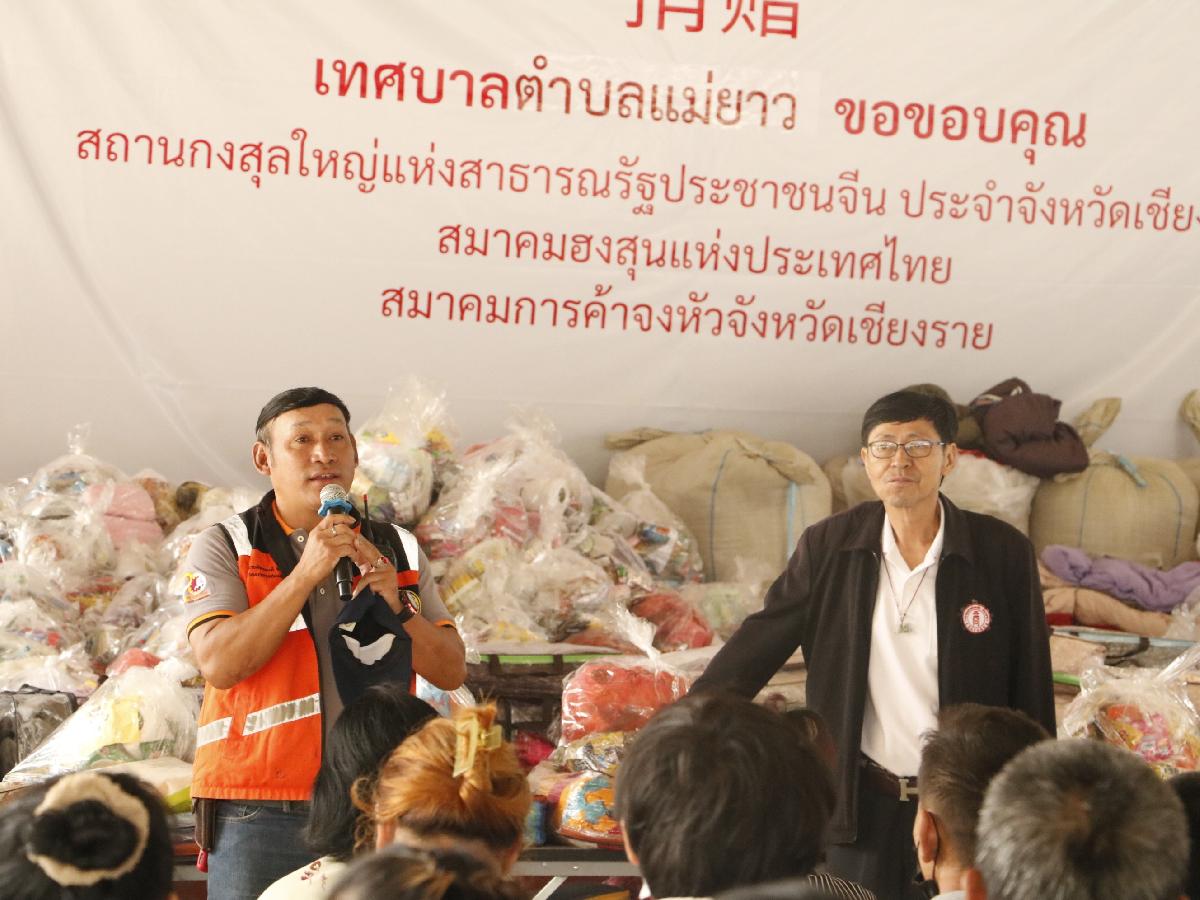 นายอภิรักษ์ อินต๊ะวัง นายกเทศมนตรีตำบลแม่ยาว มอบหมายให้นายอัครพงษ์ เฉลิมเลี่ยมทอง รองนายกเทศมนตรีตำบลแม่ยาว ให้การต้อนรับนายกสมาคมการค้าจงหัวเชียงราย และคณะตัวแทนของกงศุลจีนประจำเชียงใหม่ ที่นำสิ่งของมามอบให้แก่ผู้ประสบอุทกภัย ในพื้นที่ตำบลแม่ยาว