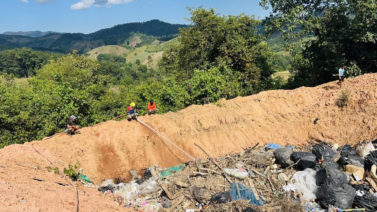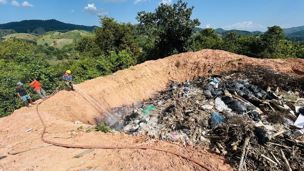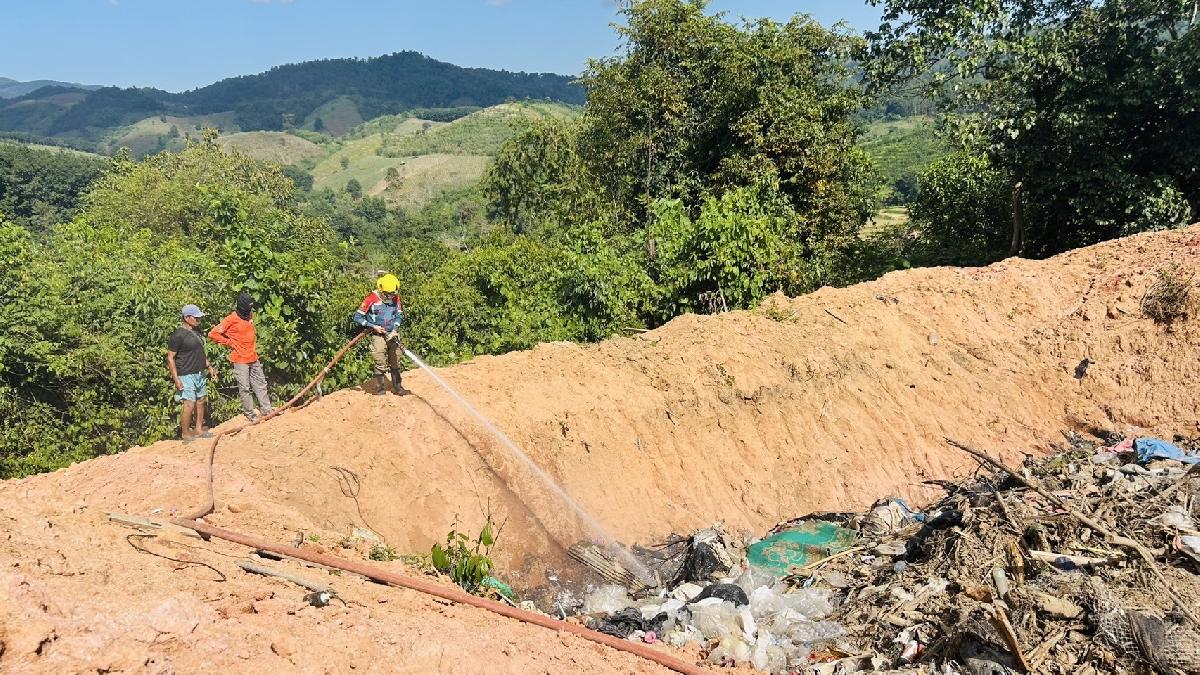 งานป้องกันและบรรเทาสาธารณภัย ออกควบคุมไฟไหม้บ่อขยะ ณ บ้านรวมมิตร หมู่ที่ 2