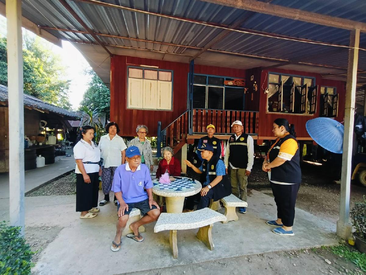 เวลา 13.00 น.ออกเยี่ยมให้กำลังใจผู้ป่วยติดเตียงและผู้ยากไร้ บ้านริมกก หมู่ที่ 4 และบ้านป่าอ้อ หมู่ที่ 5