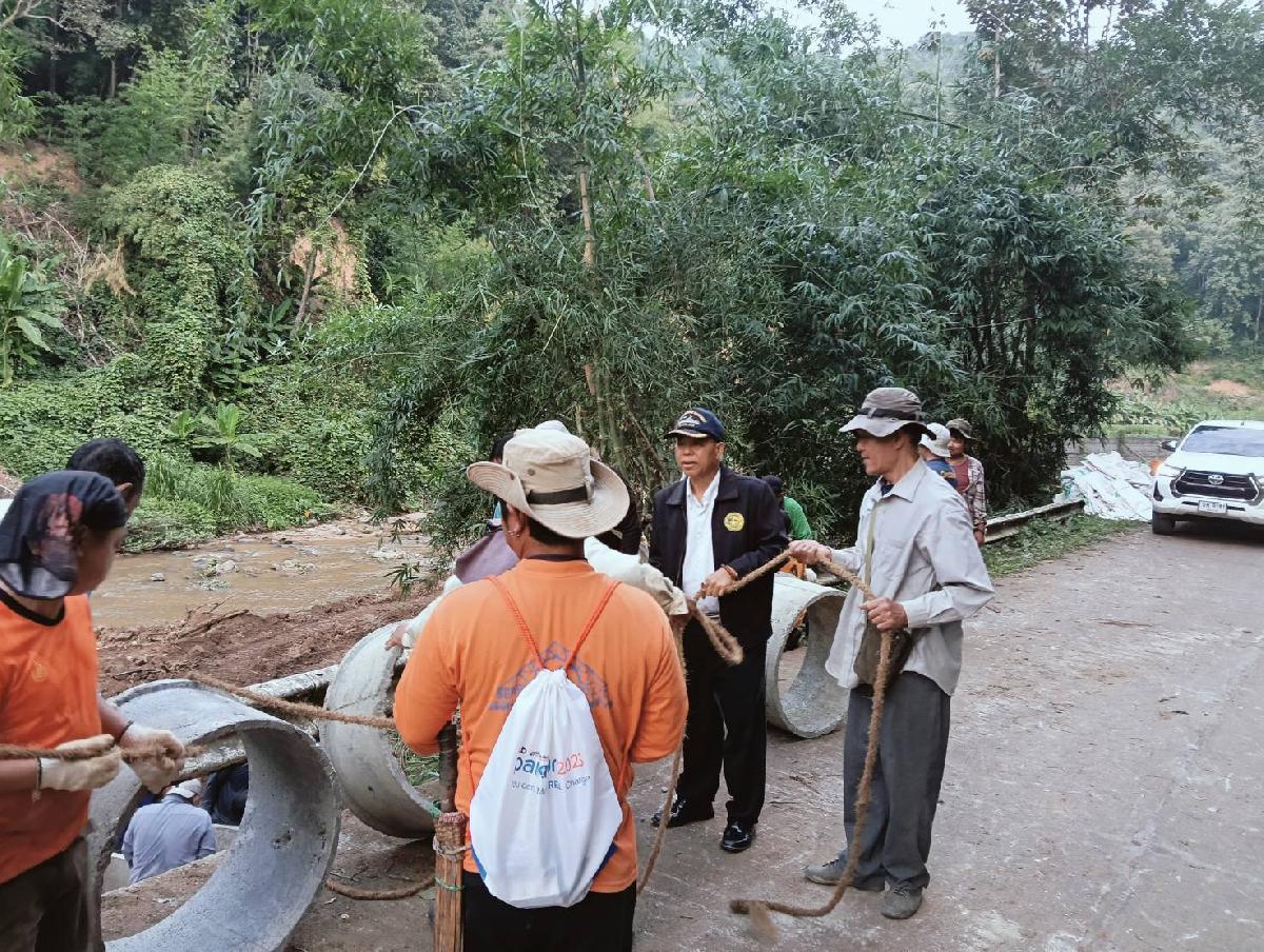 ตรวจงานปรับปรุงซ่อมแซมถนนเนื่องจากถูกน้ำป่าไหลหลากกัดเซาะเส้นทาง ณ บ้านห้วยแม่ซ้าย หมู่ที่ 11
