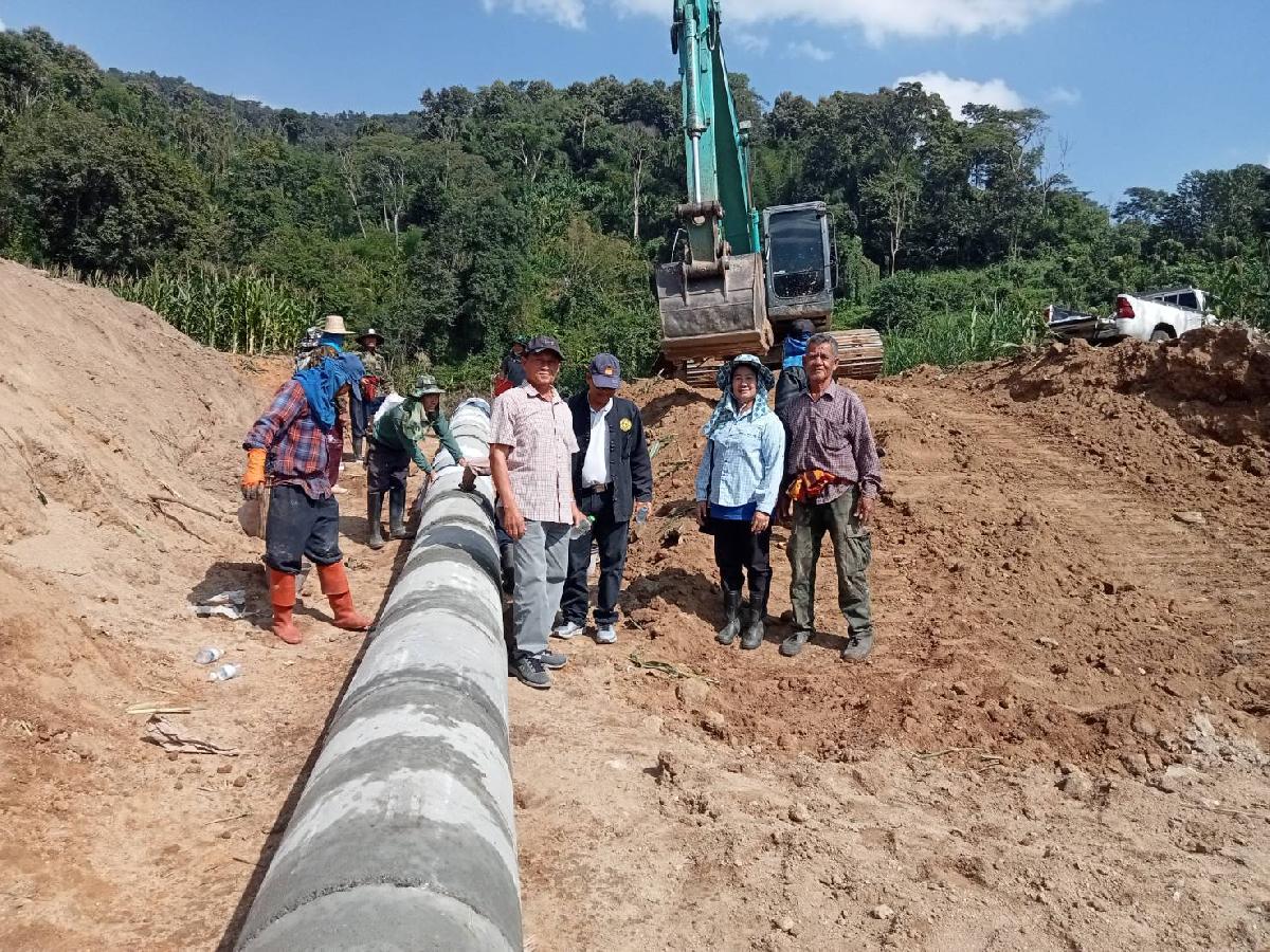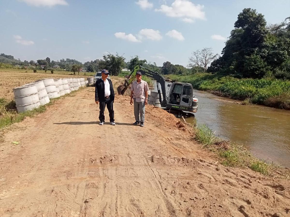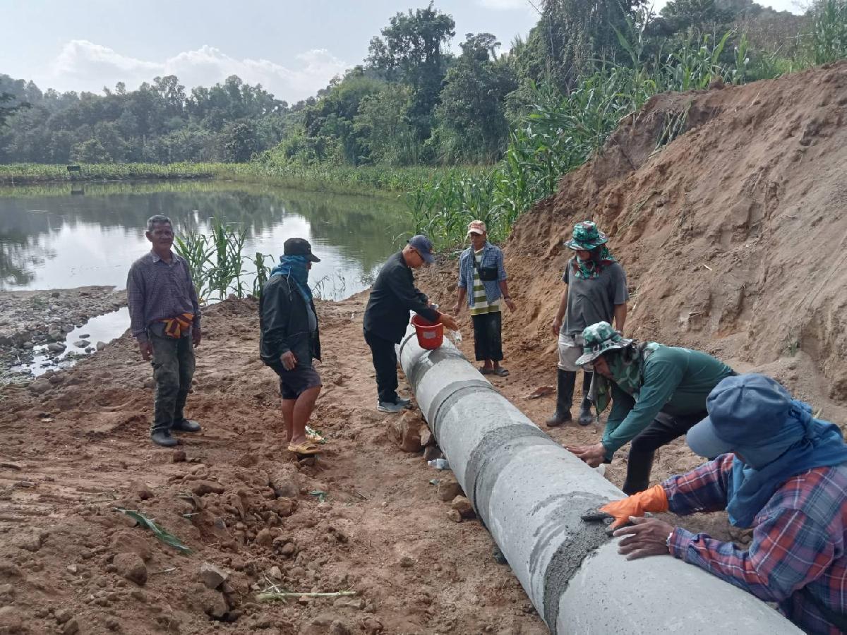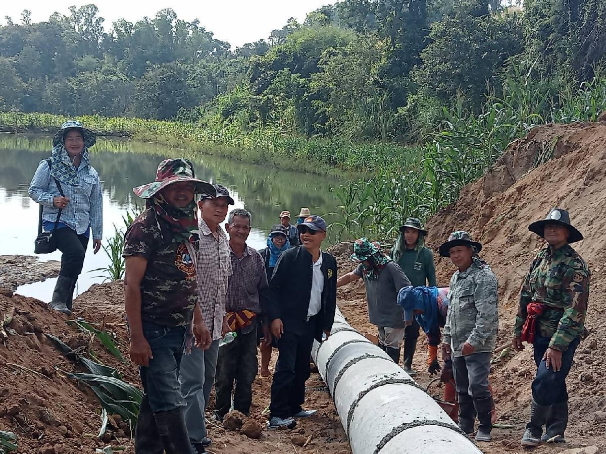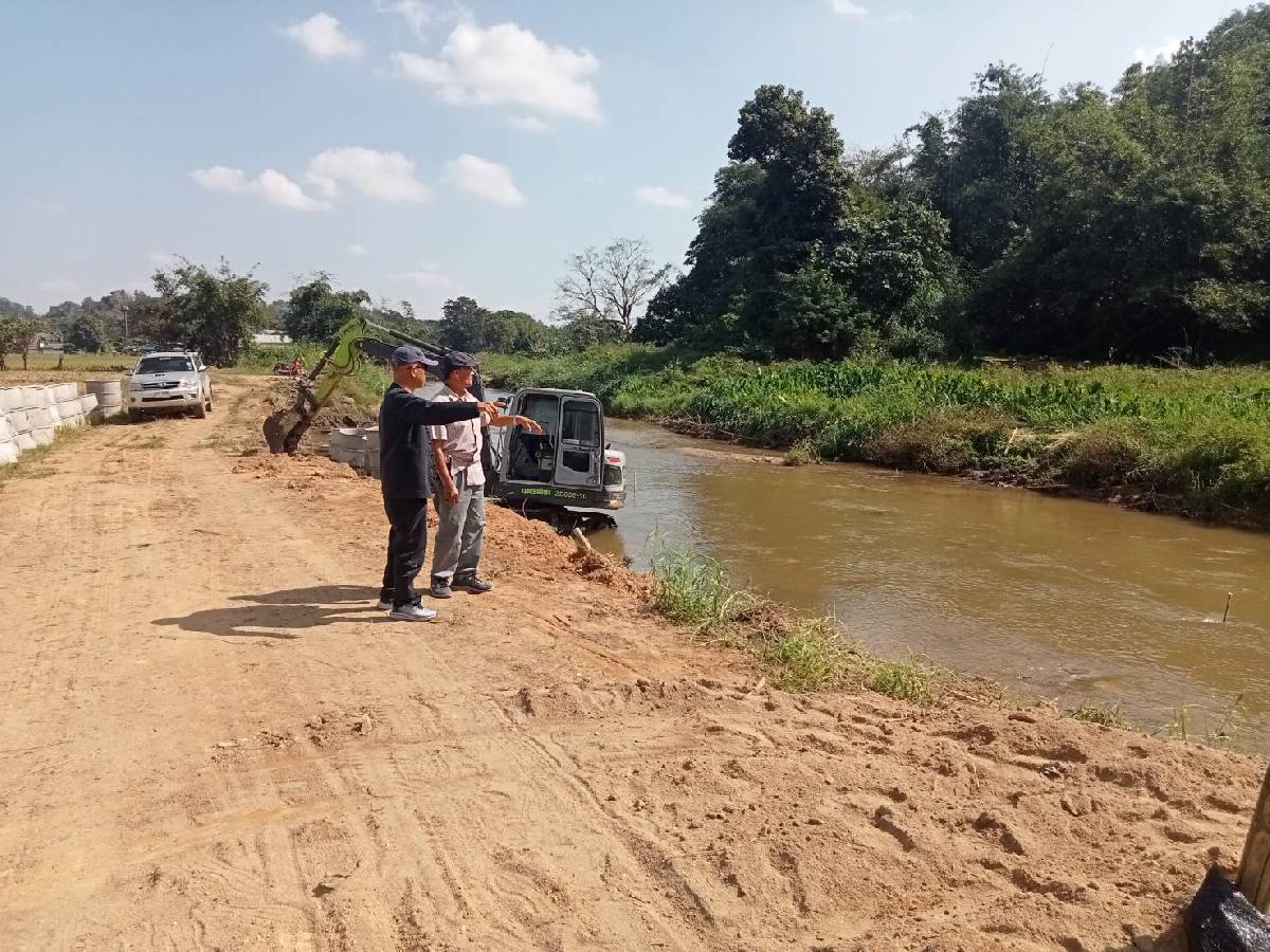 เวลา 13.00 น. ลงพื้นที่ตรวจงานรถแบคโฮวางท่อซีเมนต์คันบ่อปลา เนื่องจากฝนตกหนักที่ผ่านมาทำให้คันบ่อปลาขาด ณ บ้านทุ่งหลวง หมู่ที่ 9