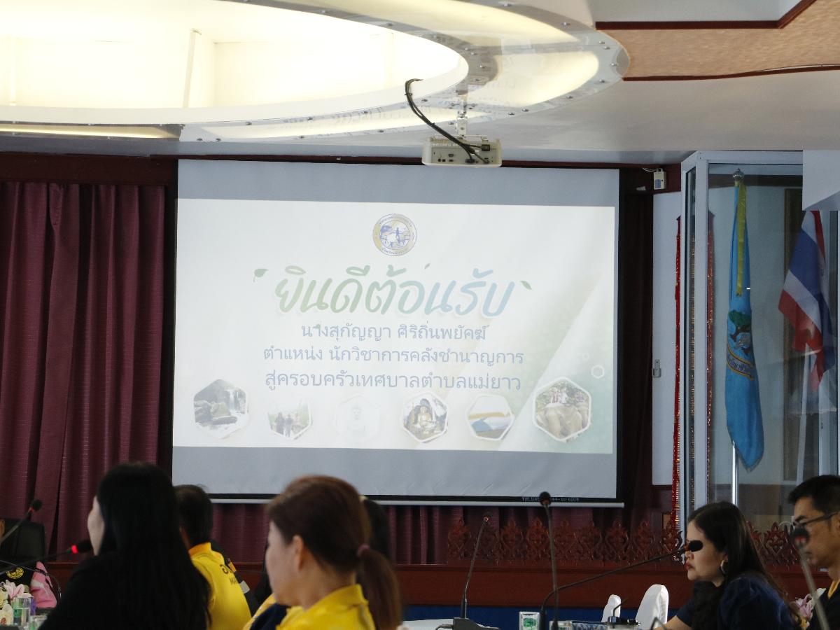มีนายอภิรักษ์ อินต๊ะวัง นายกเทศมนตรีตำบลแม่ยาว ทีมบริหาร ประธานสภา สมาชิกสภา หน.สป. ผอ.กองทุกกอง หน.ฝ่ายทุกฝ่าย และพนักงานเทศบาลตำบลแม่ยาว ร่วมแสดงความยินดีต้อนรับพนักงานโอนย้ายนางสุกัญญา ศิริถิ่นพยัคฆ์ ตำแหน่งนักวิชาการคลังชำนาญการ จากองค์การบริหารส่วนตำบลแม่จัน พร้อมคณะ