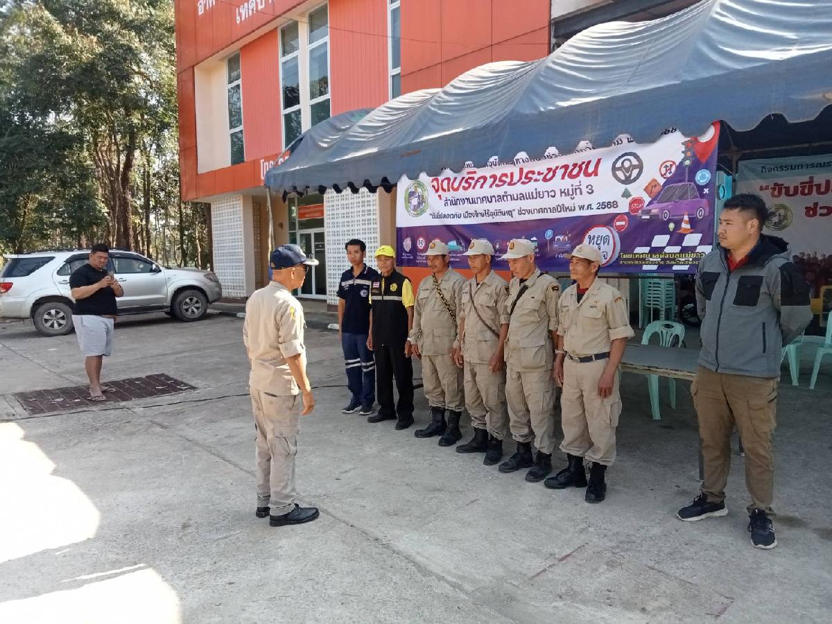 นายอภิรักษ์ อินต๊ะวัง นายกเทศมนตรีตำบลแม่ยาว คณะผู้บริหาร ออกตรวจเยี่ยม และให้กำลังใจเจ้าหน้าที่งานป้องกันฯ เจ้าหน้าที่แพทย์ฉุกเฉิน สายตรวจอาสา และเจ้าหน้าที่อปพร ที่ประจำจุดบริการนักท่องเที่ยว