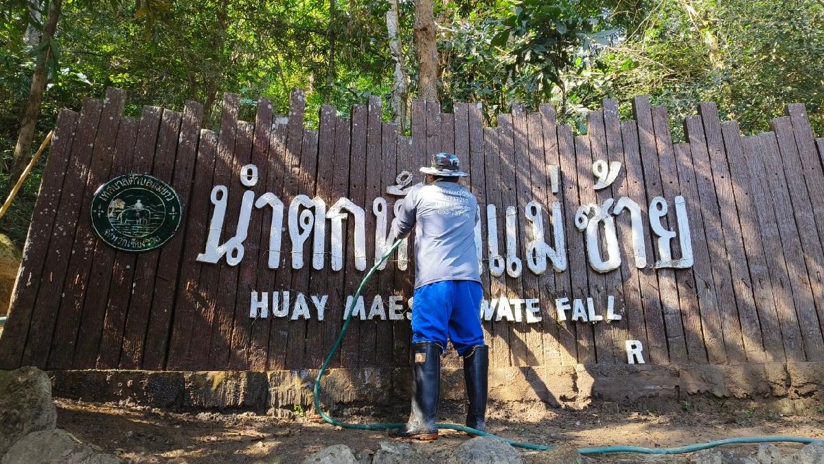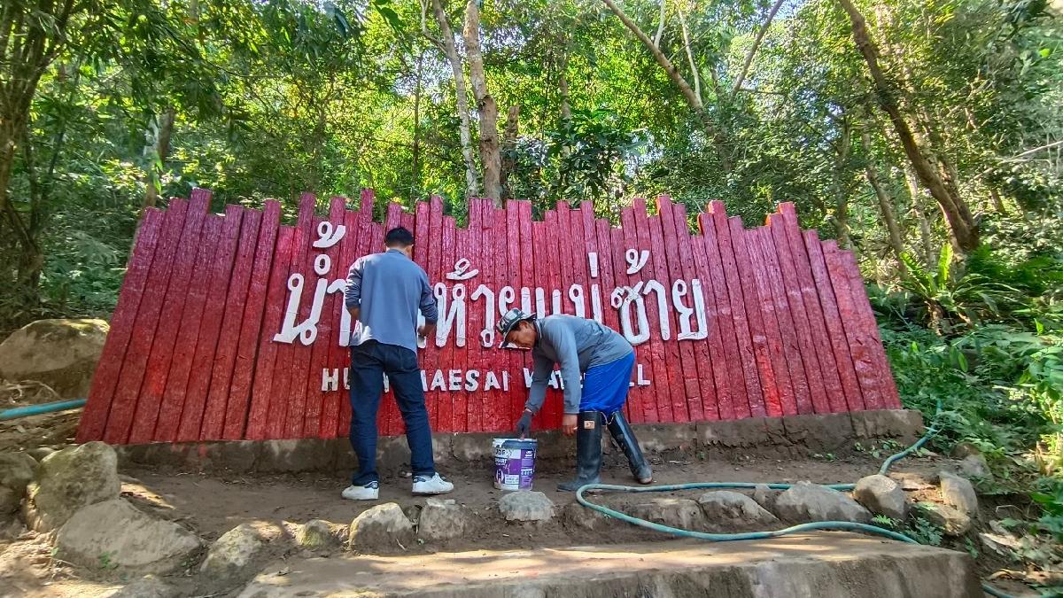 ปรับปรุงซ่อมแซมป้ายแหล่งท่องเที่ยวน้ำตกห้วยแม่ซ้าย