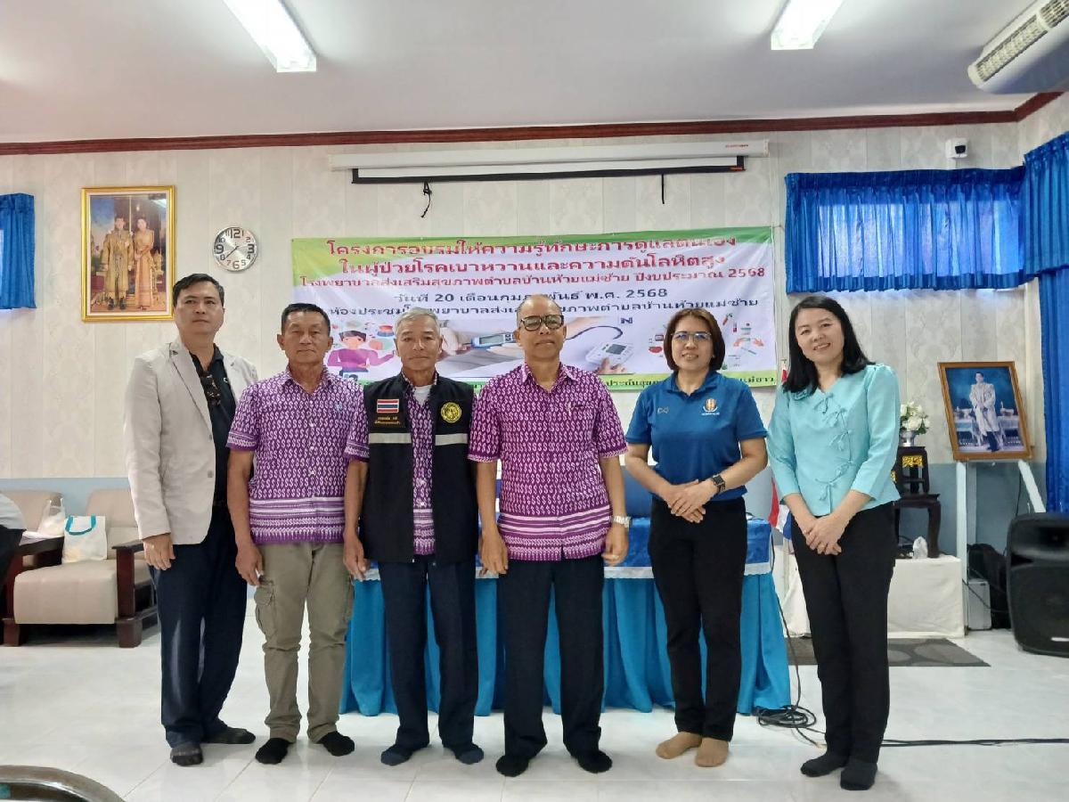 วันพฤหัสบดี ที่ 20 กุมภาพันธ์ 2568 เวลา08:30น.มีนายอภิรักษ์ อินต๊ะวัง นายกเทศมนตรีเทศบาลตำบลแม่ยาวเป็นประธานเปิดโครงการอบรมให้ความรู้ทักษะการดูแลตนเองในผู้ป่วยโรคเบาหวานและความดันโลหิตสูง
