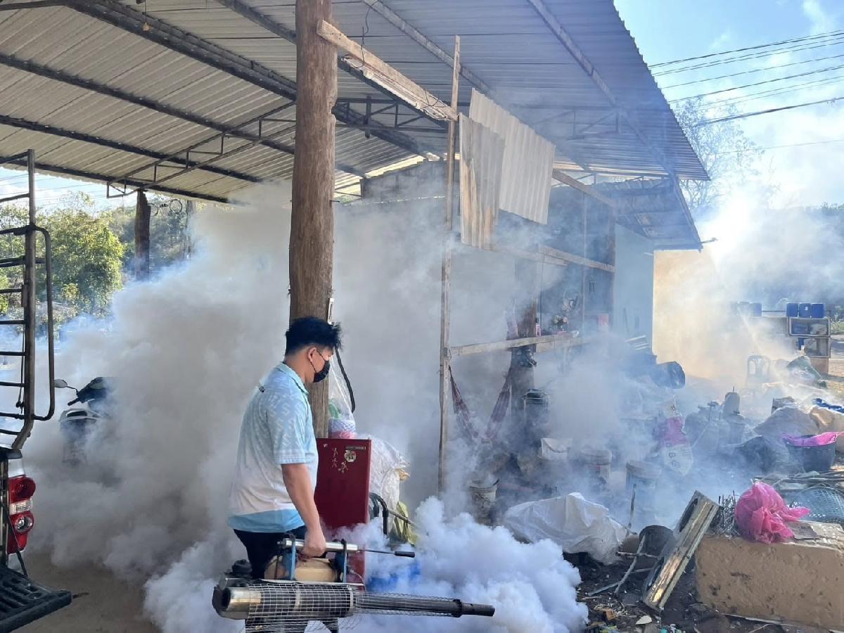 เทศบาลตำบลแม่ยาว ฉีดพ่นหมอกควันกำจัดยุงลาย ในพื้นที่บ้านทุ่งหลวง หมู่ที่ 9