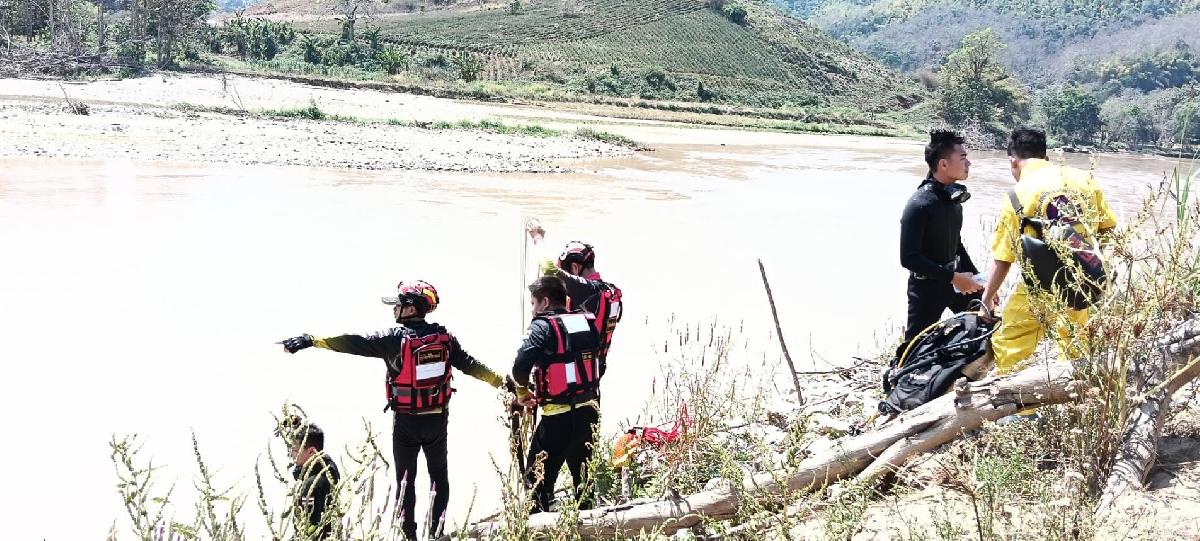 ทีมนักประดาน้ำสมาคมศิริกรณ์และงานป้องกันและบรรเทาสาธารณภัย เจ้าหน้าที่กู้ชีพ เทศบาลตำแม่ยาว ค้นหาคนจมน้ำ