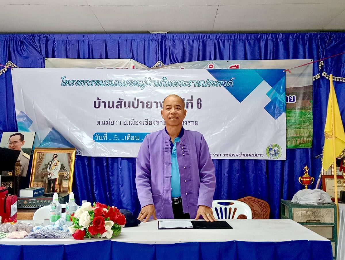 วันอาทิตย์ ที่ 9 มีนาคม 2568 เวลา 09.30 น. นายอภิรักษ์ อินต๊ะวัง นายกเทศมนตรีเทศบาลตำบลแม่ยาว ร่วมเป็นประธานเปิดโครงการอบรบหมอหมู่บ้านในราชประสงค์ ณ บ้านสันป่ายาง หมู่ที่ 6