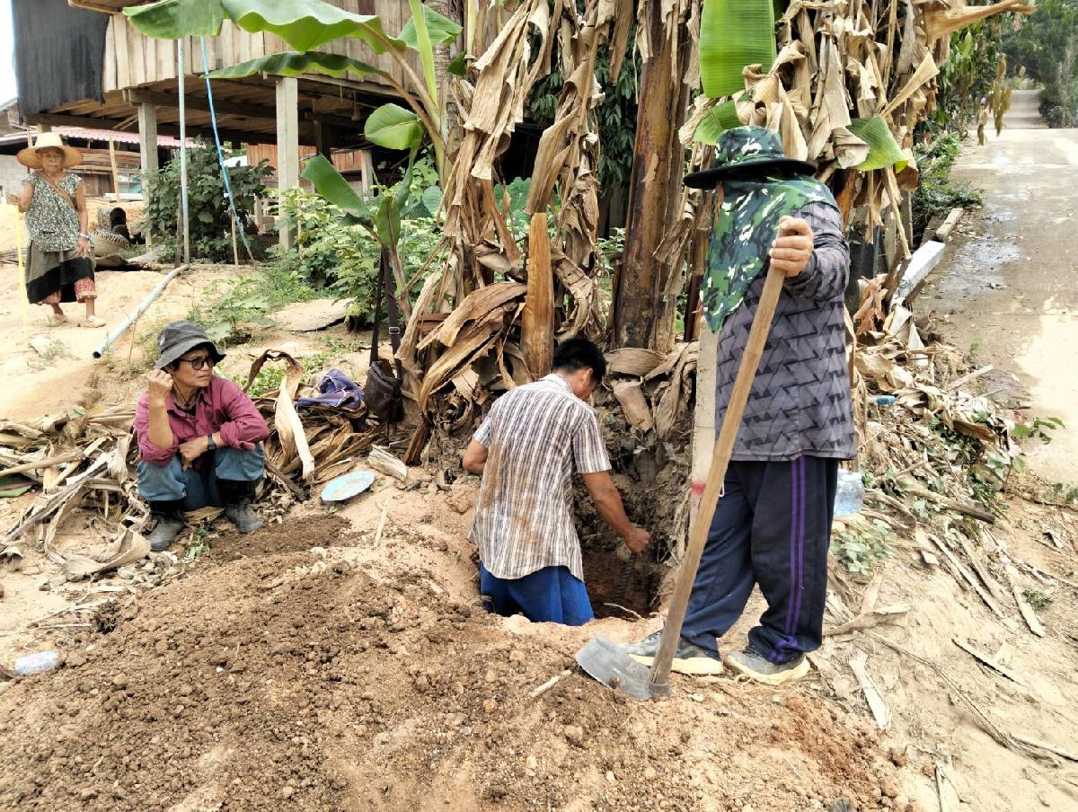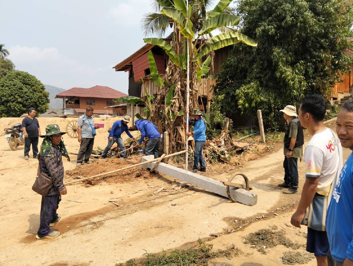 ติดตั้งเสาวัดระดับน้ำกกเตือนภัยช่วงน้ำหลาก บ้านแคววัวดำ หมู่ที่12