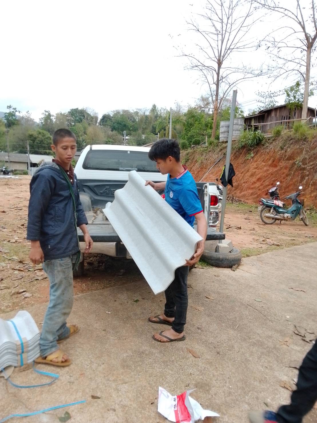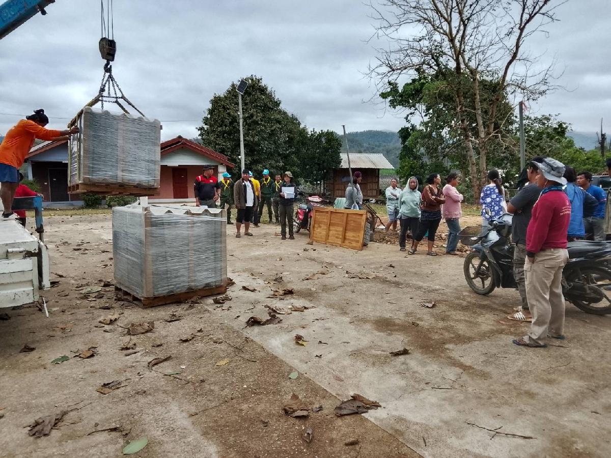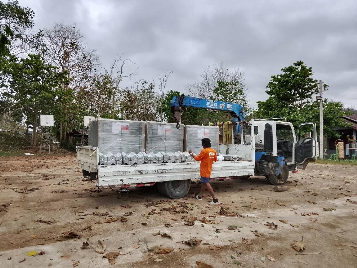 ส่งมอบกระเบื้องและวัสดุอุปกรณ์ในการซ่อมแซมบ้านให้แก่ประชาชนที่ได้รับความเสียหายจากเหตุวาตภัย