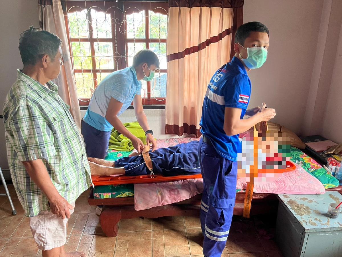 จ้าหน้าที่ศูนย์ปฎิบัติการแพทย์ฉุกเฉินเทศบาลตำบลแม่ยาว ออกรับผู้ป่วย บ้านป่าอ้อ หมู่ 5 ชาย 1 ราย