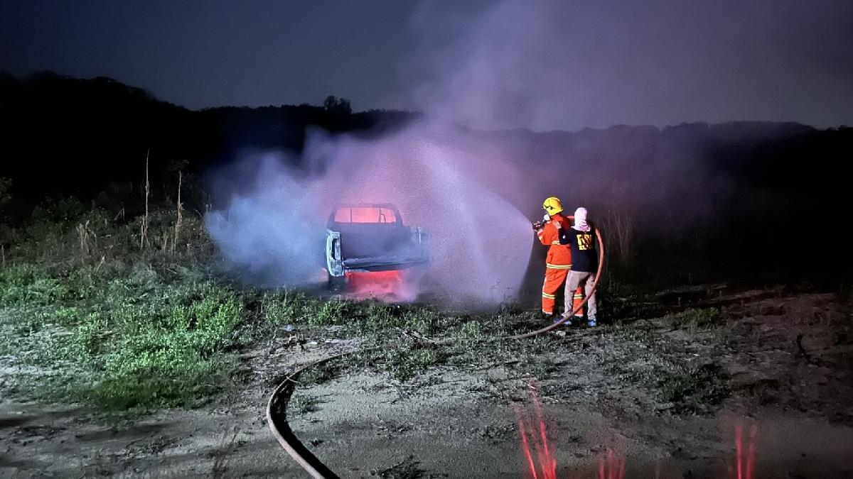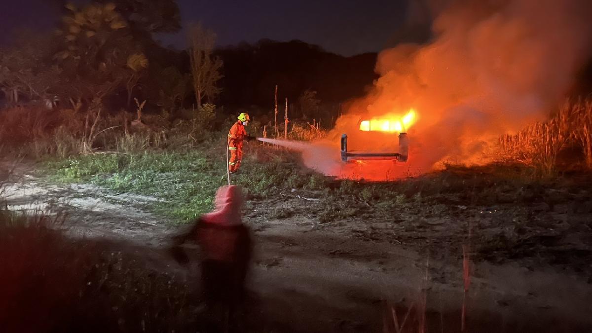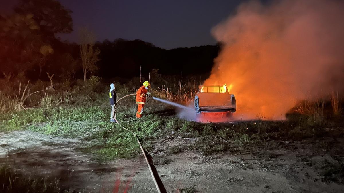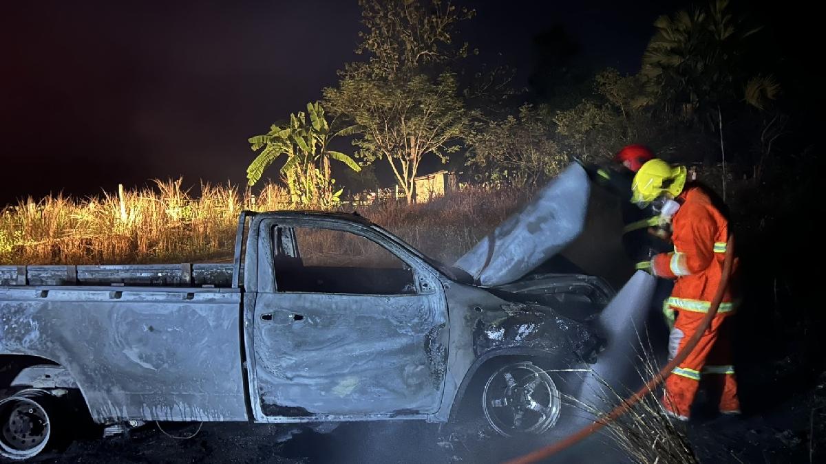 งานป้องกันและบรรเทาสาธารณภัย ระงับเหตุไฟไหม้รถกระบะ บ้านทรายมูล หมู่ที่ 8