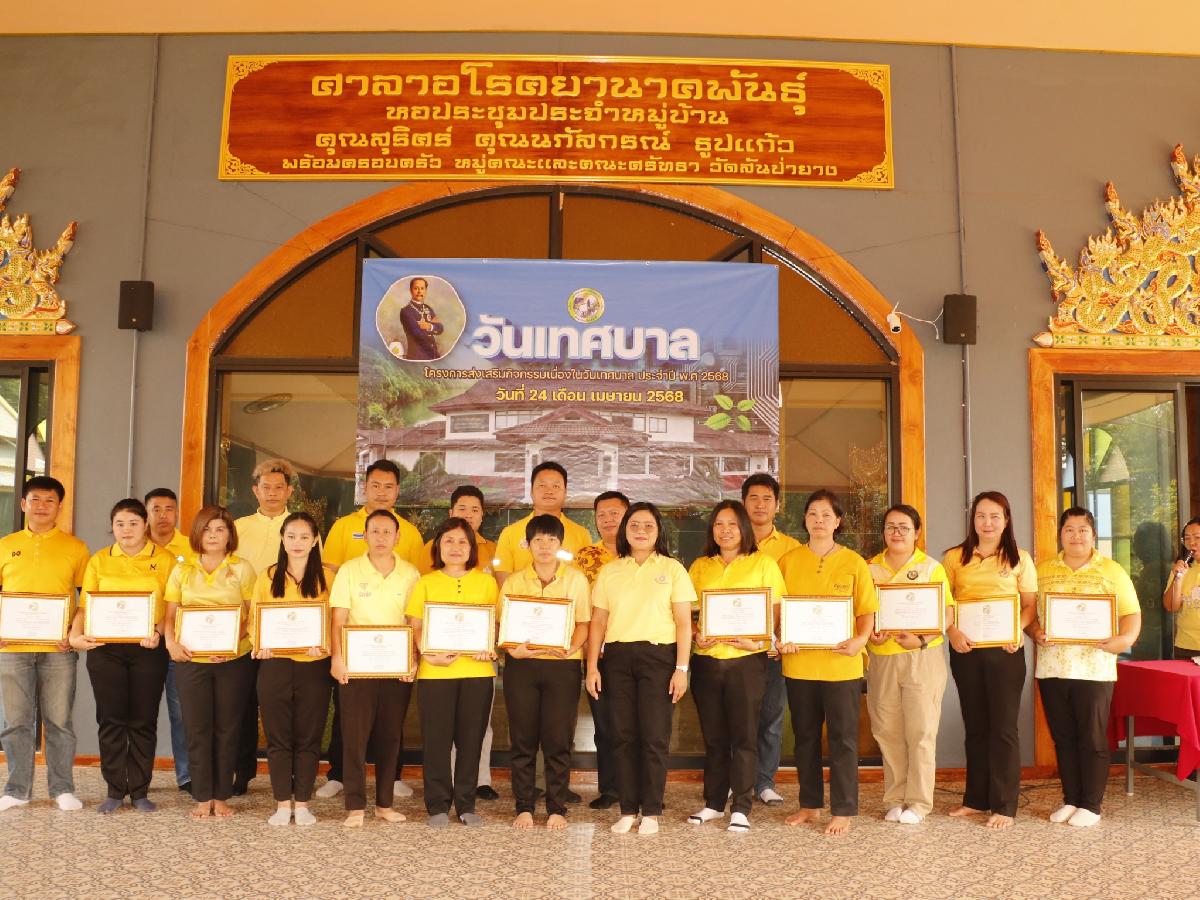 วันพฤหัสบดีที่ 24 เมษายน 2568 เวลา 09.30 น. ศิริรัตน์ สันธิ ปลัดเทศบาล ปฏิบัติหน้าที่นายกเทศมนตรีตำบลแม่ยาว เป็นประธานเปิดโครงการส่งเสริมกิจกรรมเนื่องในวันเทศบาล โดยมีหัวหน้าสำนักปลัดเทศบาล ผู้อำนวยการกองทุกกอง หัวหน้าฝ่ายทุกฝ่ายและพนักงานเทศบาลตำบลแม่ยาว พร้อมด้วยนักเรียนผู้สูงอายุเข้าร่วมกิจกรรม ณ วัดสันป่ายาง หมู่ที่ 6 ตำบลแม่ยาว ทั้งนี้ เทศบาลตำบลแม่ยาวจัดกิจกรรมวันเทศบาล มีการมอบใบประกาศเกียรติคุณพนักงานที่มีคุณธรรม จริยธรรม ในการปฎิบัติหน้าที่ และได้รับการบรรยายพระธรรมเทศนา จากท่านพระอาจารย์สุขเกษม เขมโก ผู้ช่วยเจ้าอาวาสวัดสันป่ายาง มาบรรยายพระธรรมเทศนา หลังจากนั้น เป็นการทำกิจกรรมบำเพ็ญประโยชน์ การปลูกต้นไม้ และทำความสะอาดภายในวัดสันป่ายาง