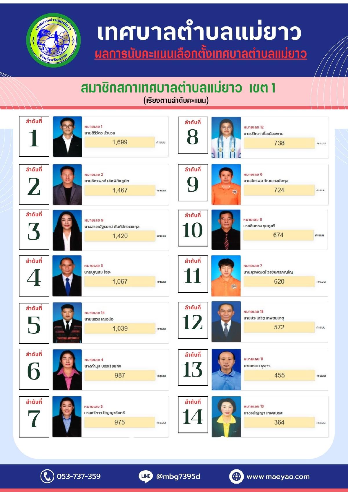 ผลการนับคะแนนเลือกตั้งเทศบาลตำบลแม่ยาว