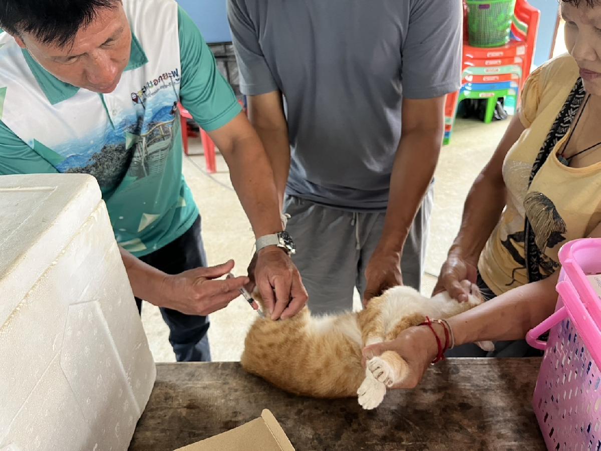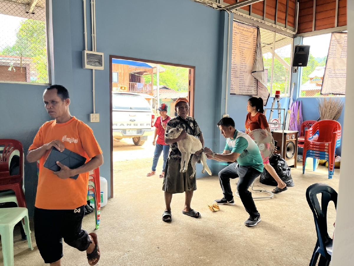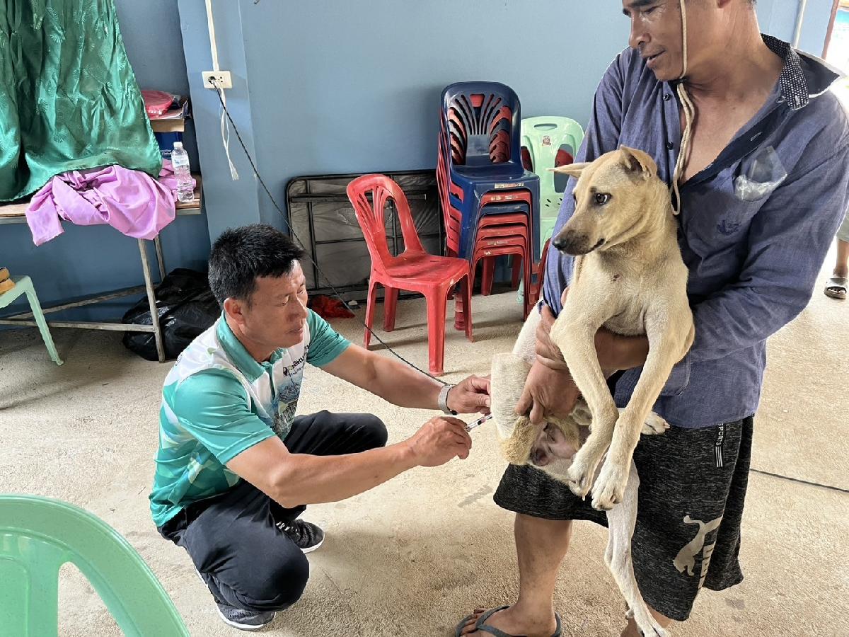 กองสาธารณสุขและสิ่งแวดล้อม ลงพื้นที่ให้บริการฉีดวัคซีนโรคพิษสุนัขบ้า ณ บ้านห้วยน้ำตก ม.19