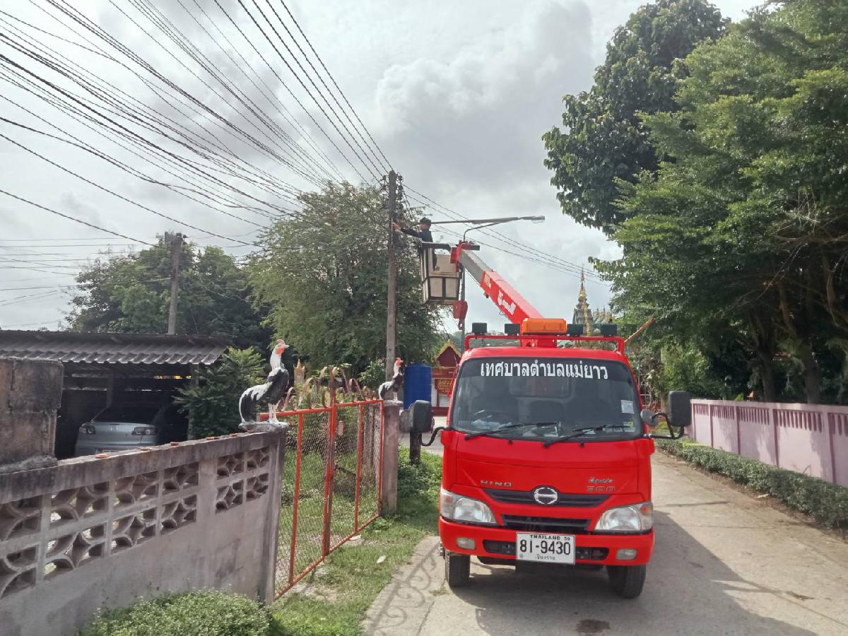 นางสาวศิริรัตน์ สันธิ ปลัดเทศบาล ปฏิบัติหน้าที่ นายกเทศมนตรีตำบลแม่ยาว ได้มอบหมายให้กองช่าง (งานไฟฟ้า) ออกซ่อมแซมเสียงตามสาย หมู่ที่ 6 บ้านสันป่ายาง