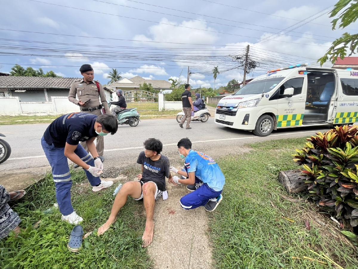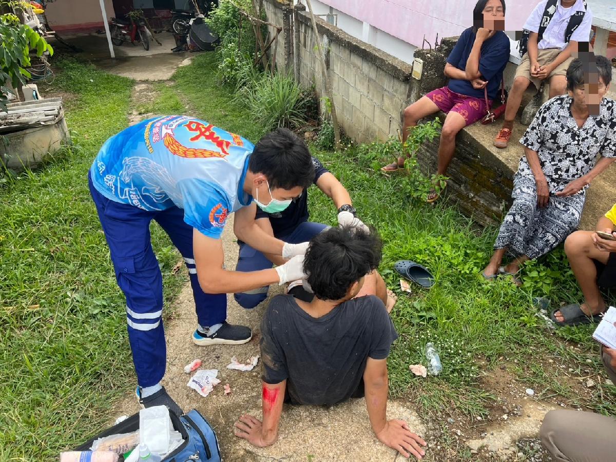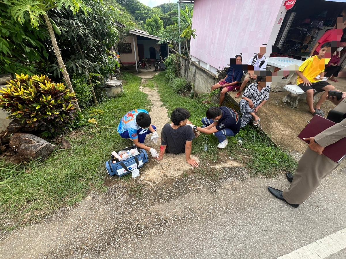 ????????3.ออกรับผู้บาดเจ็บจักรยานยนต์ล้มเอง บ้าน ท่าหลุก หมู่.16 เพศชาย1รายหมดสติปลุกตื่น แผลฉีกขาดหลังหูซ้าย ถลอกตามร่างกาย