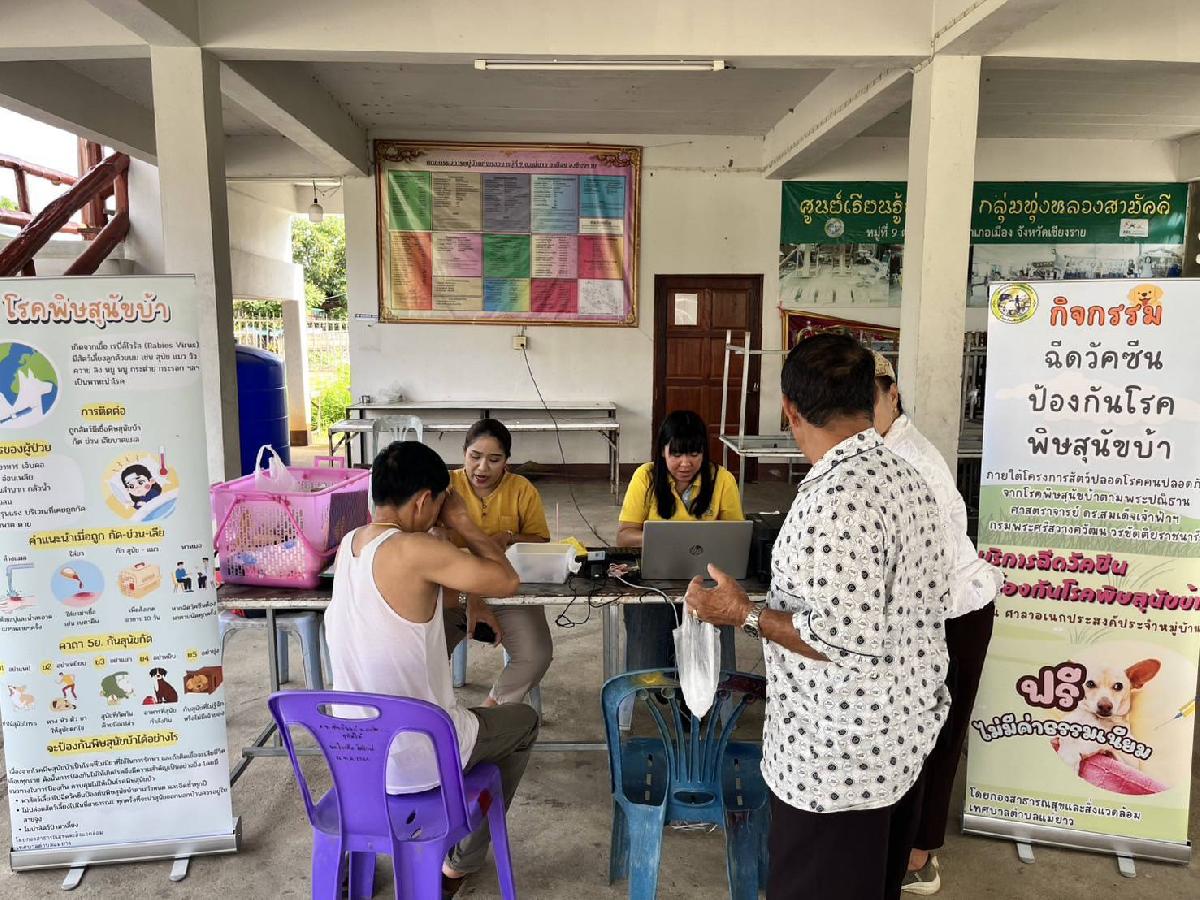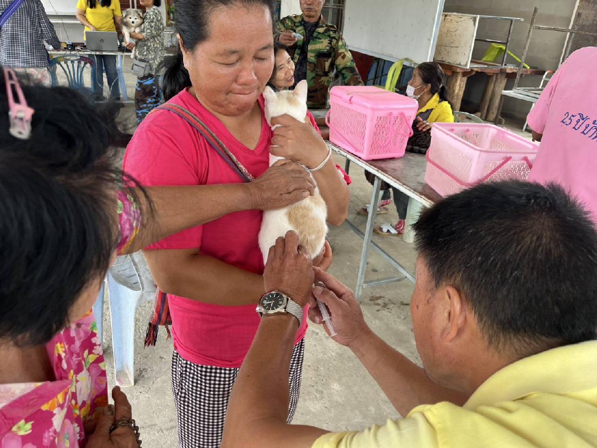 กองสาธารณสุขและสิ่งแวดล้อม ลงพื้นที่บริการฉีดวัคซีนโรคพิษสุนัขบ้า บ้านทุ่งหลวง หมู่ที่ 9