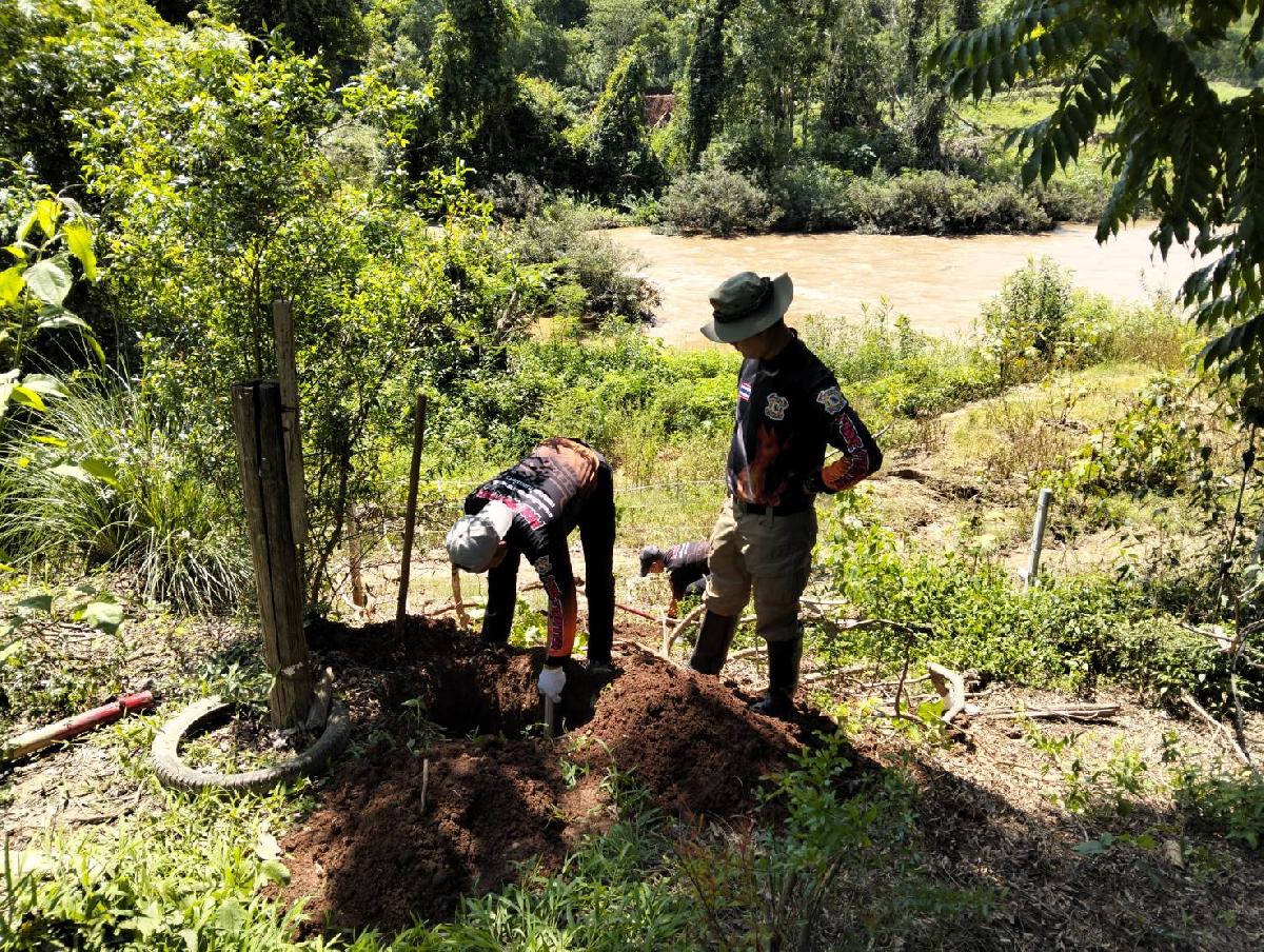 จ่าสิบเอกพิชัย พนาสง่าวงศ์ เจ้าพนักงานป้องกันและบรรเทาสาธารณภัยชำนาญงาน พร้อม เจ้าหน้าที่งานป้องกัน 5 นาย ลงพื้นที่ในดำเนินการติดตั้งเสาวัดระดับน้ำกกเตือนภัยช่วงน้ำหลาก ณ โรงเรียนผาขวางพัฒนา ซึ่งได้รับงบประมาณสนับสนุนจากนิธิฯ อุทกศาสตร์